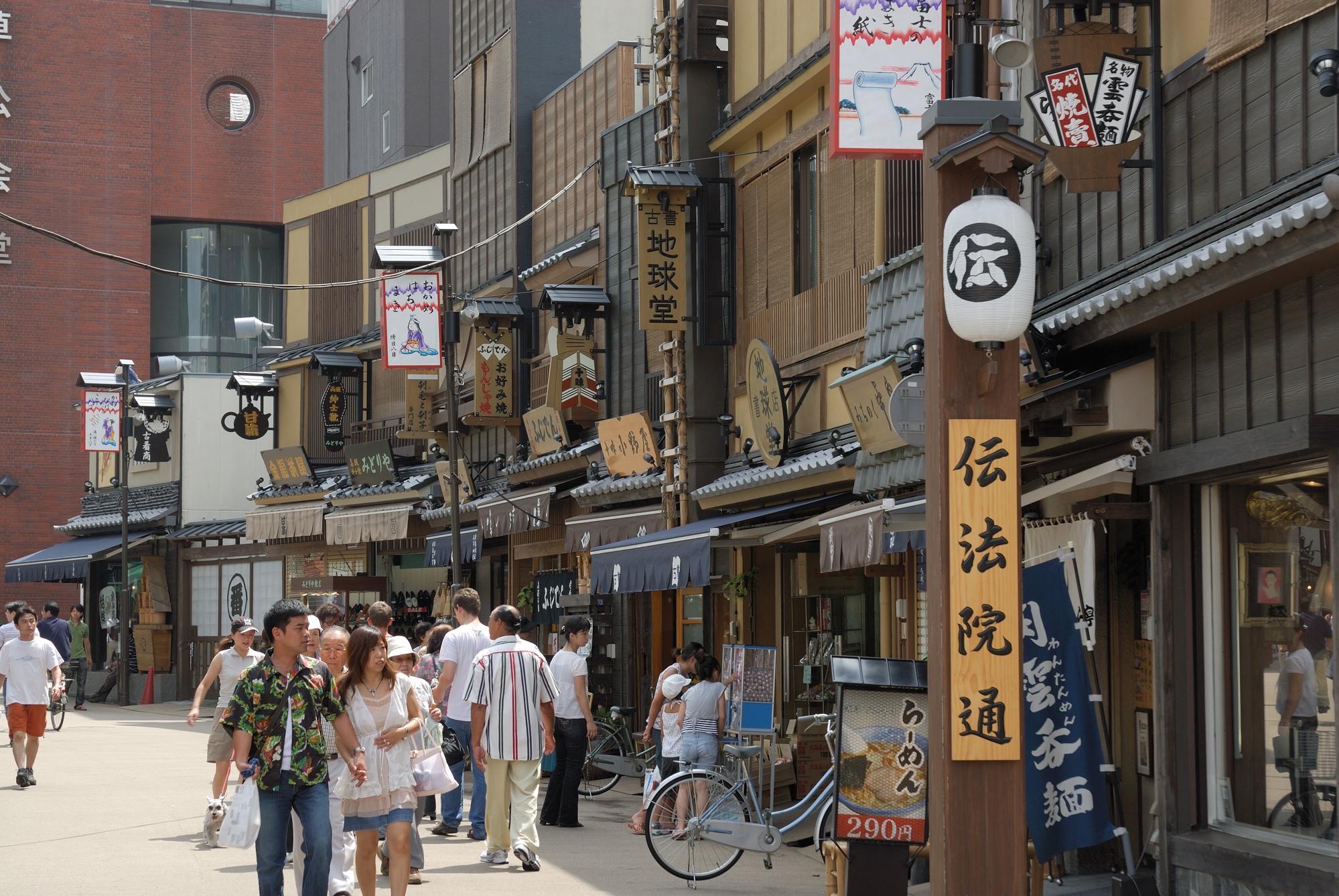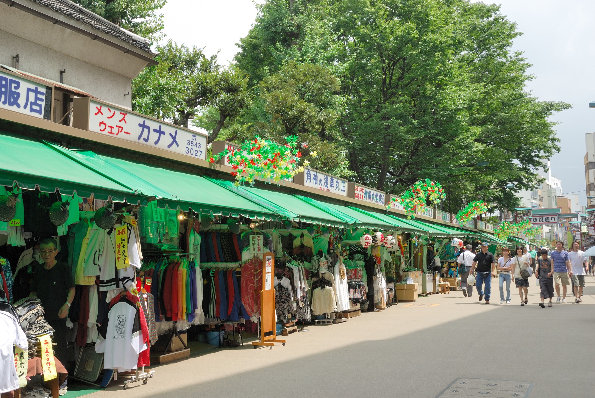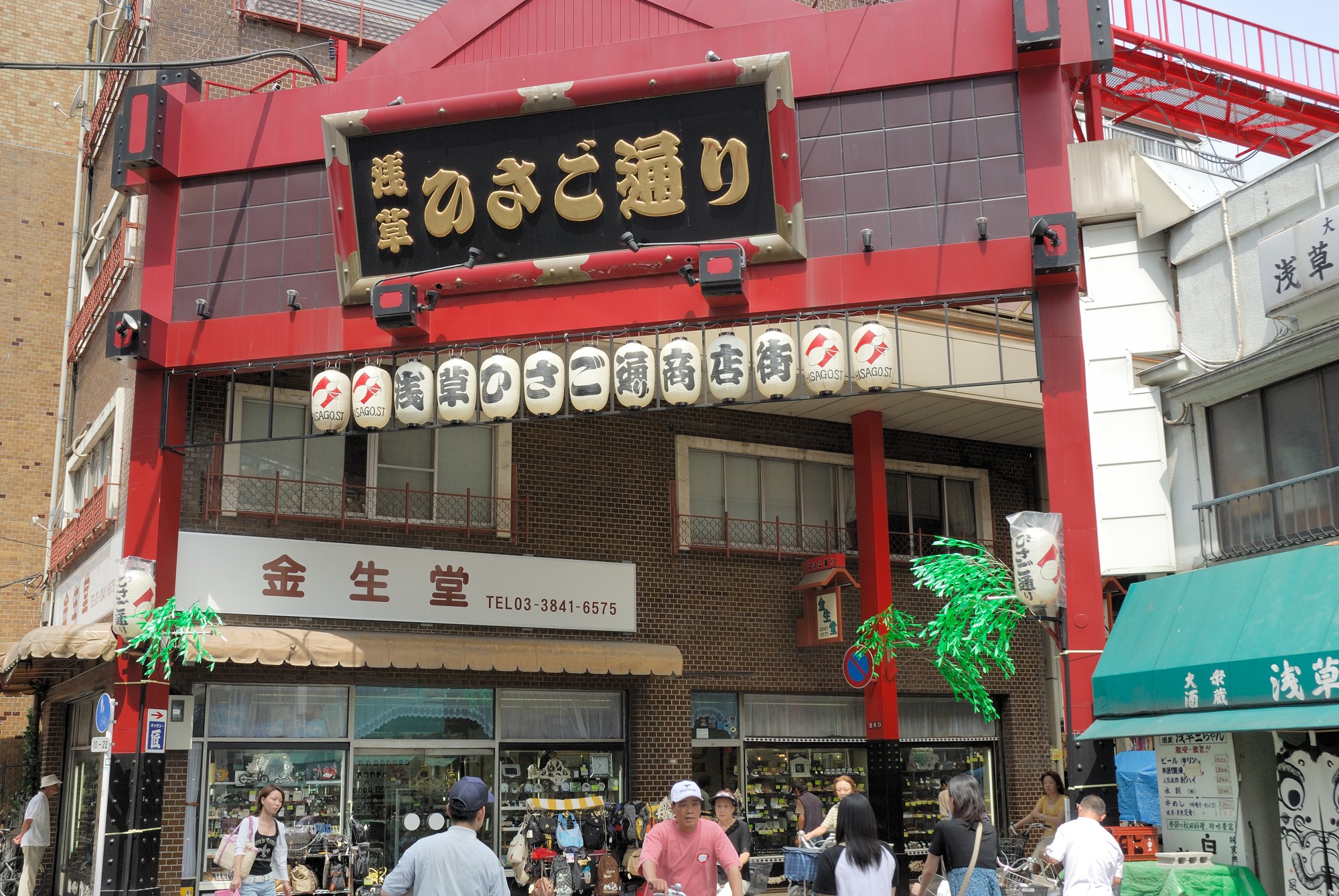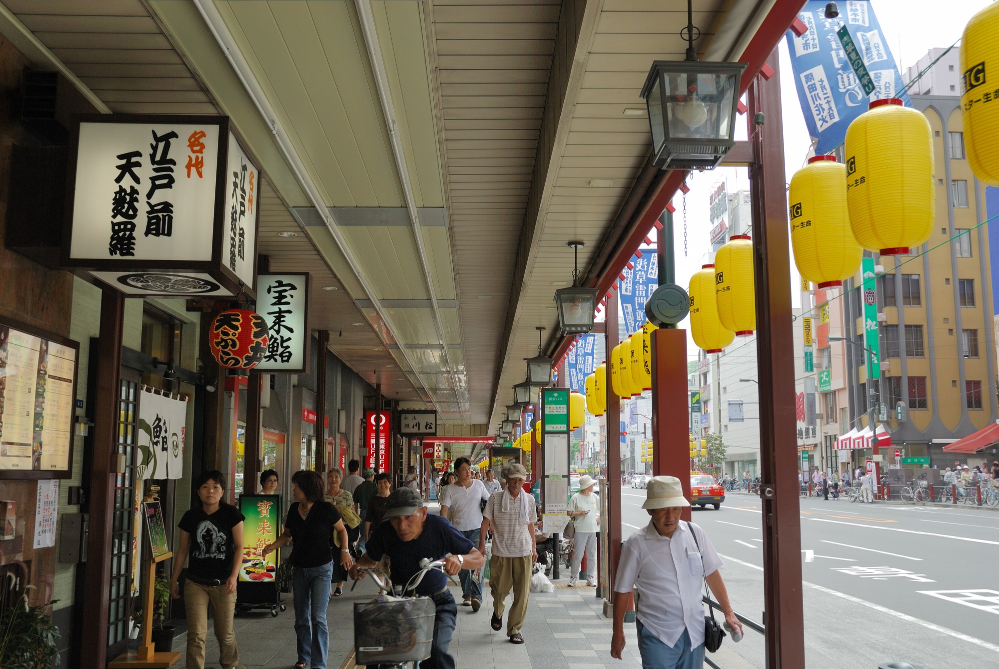 雷門通りは、その名の通り雷門の前を走る大通りで、その北側はアーケード式で商店が多く並んでいます。