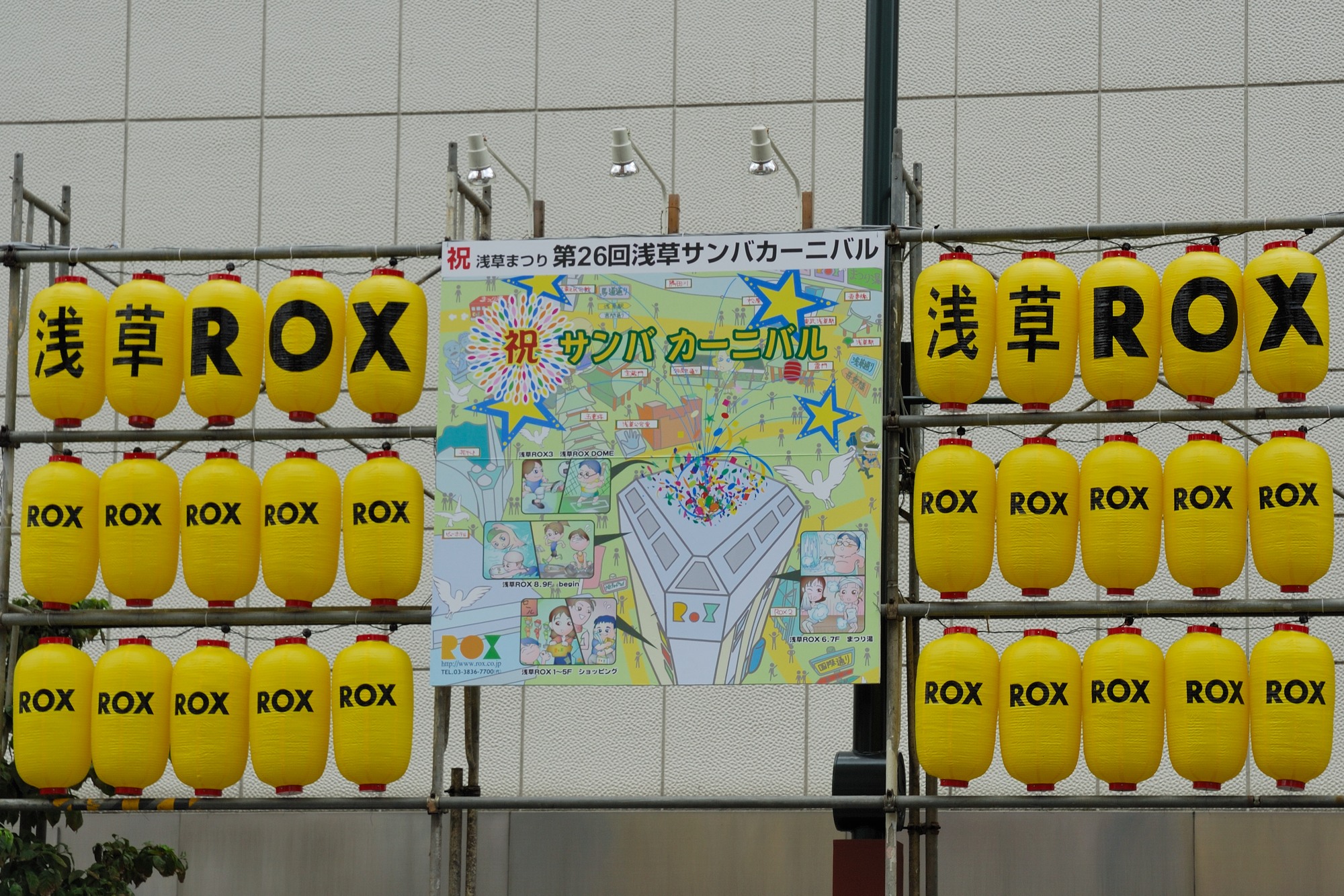 また、雷門の近くに来ると、通りの向かいの浅草ROX前には黄色い提灯がたくさんかかっていました。どうやら浅草カーニバルが来週あるので、その為にかけられていたようです。この浅草カーニバル、とても有名で一度は見てみたいと思っていますが、ちょうど私が浅草を訪問した翌週に開催されていました。