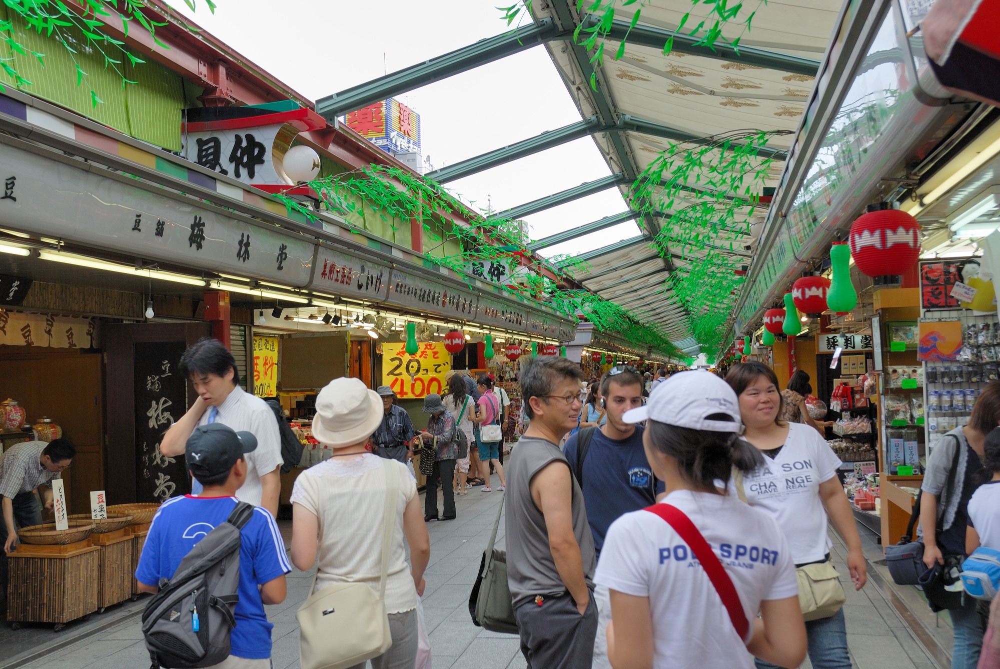 そこをブラブラと歩きます。人通りは意外と多くなく、さほど混んでいるわけではありません。途中にはおいしそうなお寿司屋さんや天ぷら屋さんがありました。