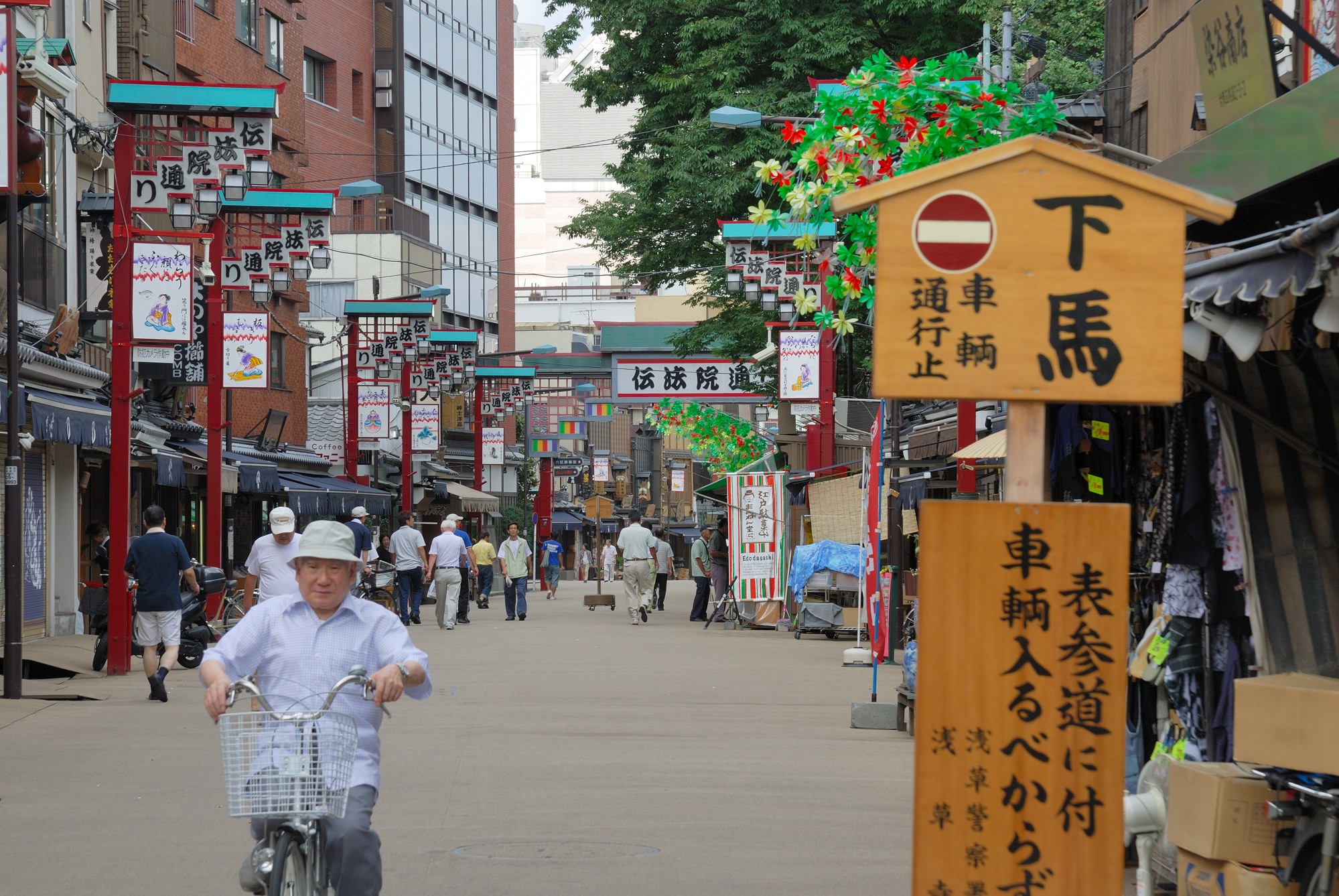 仲見世通りと途中でクロスする伝法院通りは車両通行止めですが、「下馬」と書かれた看板が立っており風情がありました。