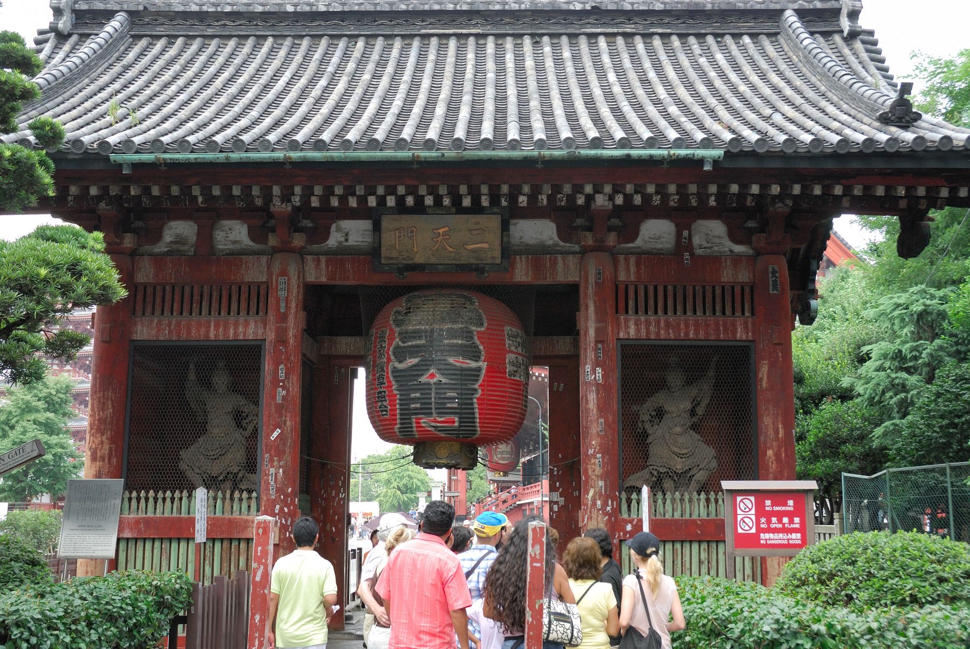 浅草神社前を通り過ぎると、浅草寺境内の東端に出ます。そこには浅草寺の東門であり国の重要文化財である二天門があります。約400年前の1618年、二代将軍の徳川秀忠が父親の徳川家康を祀るために、日光と浅草に東照宮を作りましたが、その浅草東照宮の随身門として作られたものです。(浅草にも東照宮があるとは知りませんでした!)