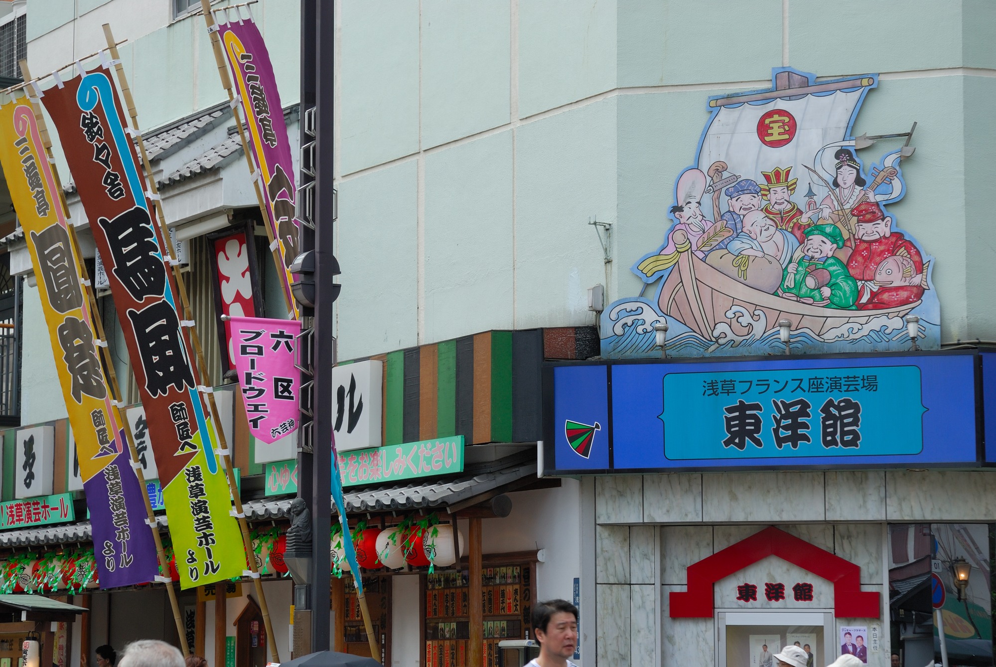 ここはもともとは芝居小屋の1つで東洋劇場といいましたが、映画館に転向するのではなく、浅草の唯一の寄席として残っているのです。今では毎日、落語、漫才、マジックなど、楽しい見世物が盛りだくさんなようで、ちょっと立ち寄って中に入ってみれば良かったなあ、と後から後悔しました。