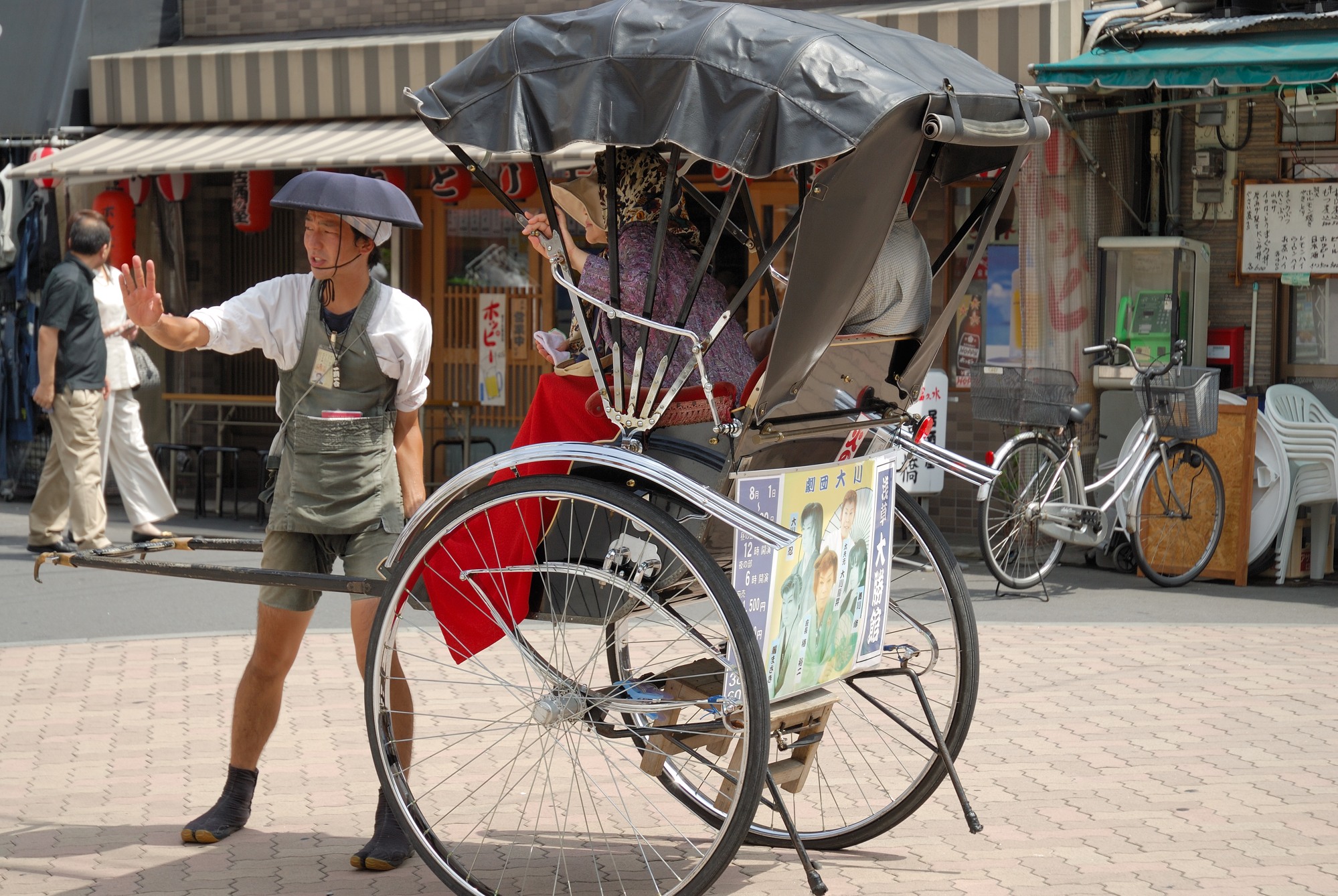 今度は六区と浅草寺の間にある伝法院通りに入っていきます。ここは入ってすぐに木造の小奇麗な店が立ち並び、通りには人力車もいました。この人力車、シンガポール流に言うとトライショーですが、多くの観光客が利用しています。乗るのはちょっぴり恥ずかしい感じがしますが、実際に乗ってみるとなかなか楽しい乗り物です。本日は1人なので流石に乗るのは恥ずかしく見ているだけでした。
