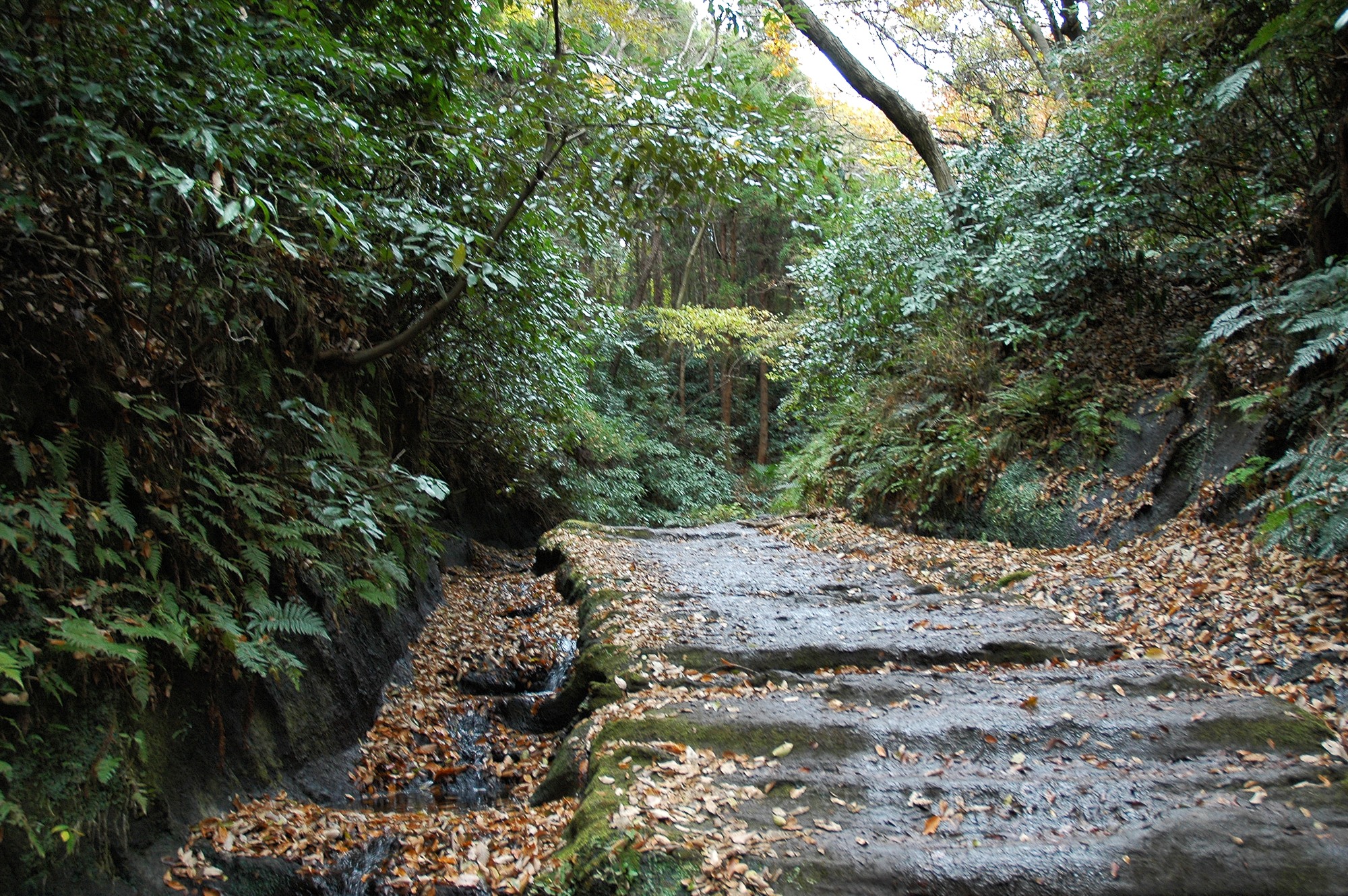 ここは鎌倉中心部からさほど離れていないのに、完全に山道の雰囲気です。 道は湿っていて滑るから要注意です。ゆっくりと登っていくと、頭上は完全に木に囲まれ、そこには紅葉を多く見ることが出来ます。