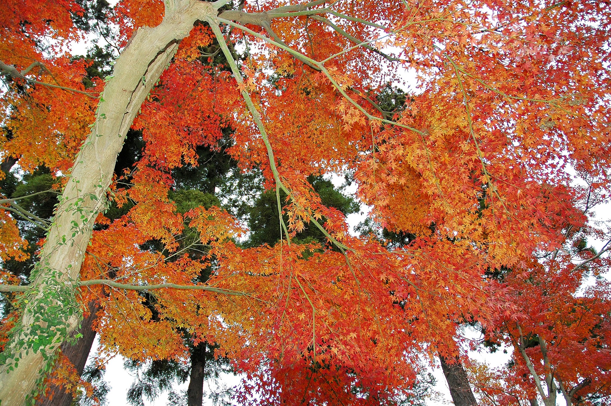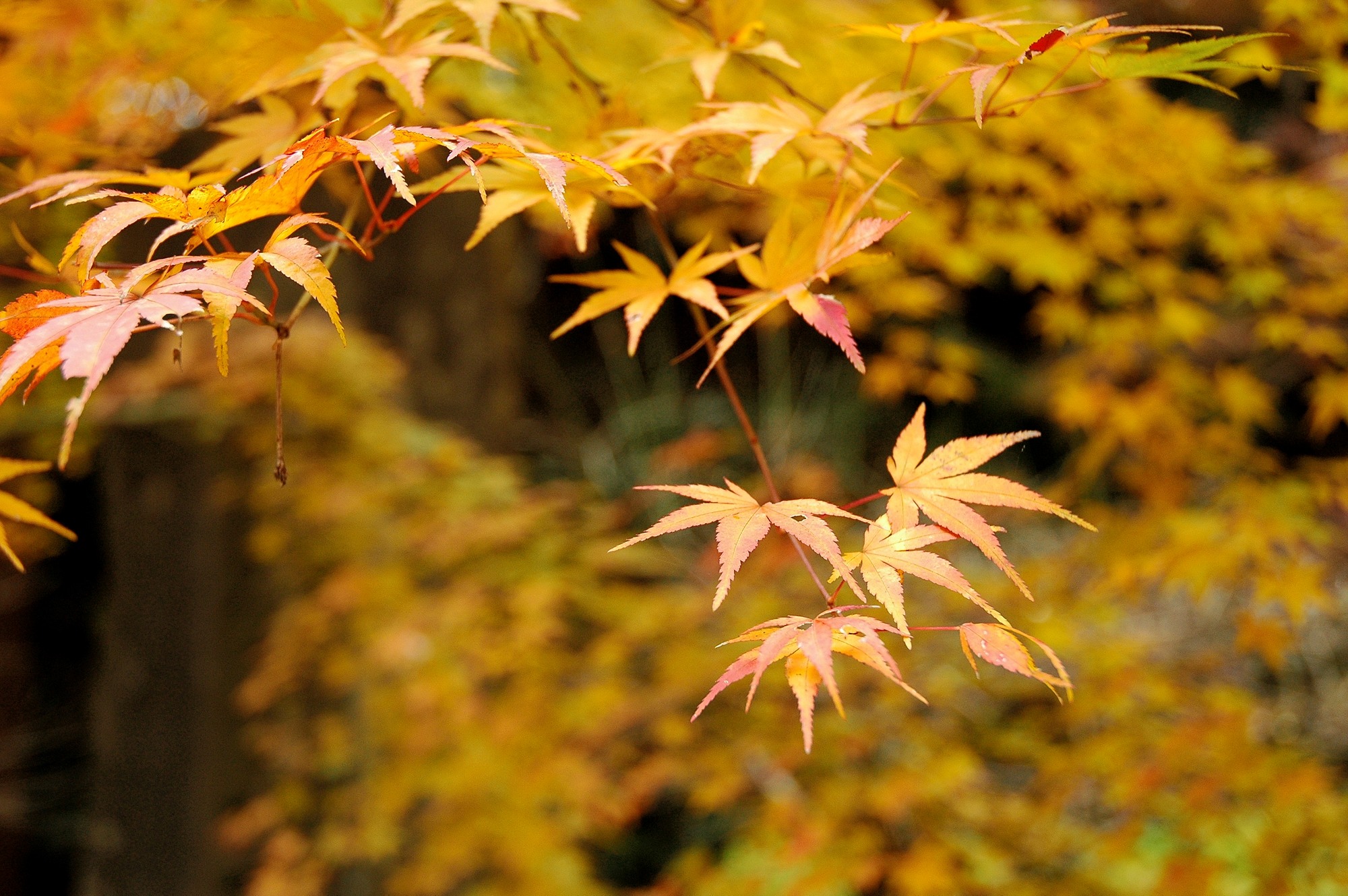 ここの紅葉は鮮やかな赤だけでなく、黄色に色づいた葉もあります。合わせて同じ黄色の銀杏もありますので、赤や黄と、色とりどり楽しむことが出来ました。