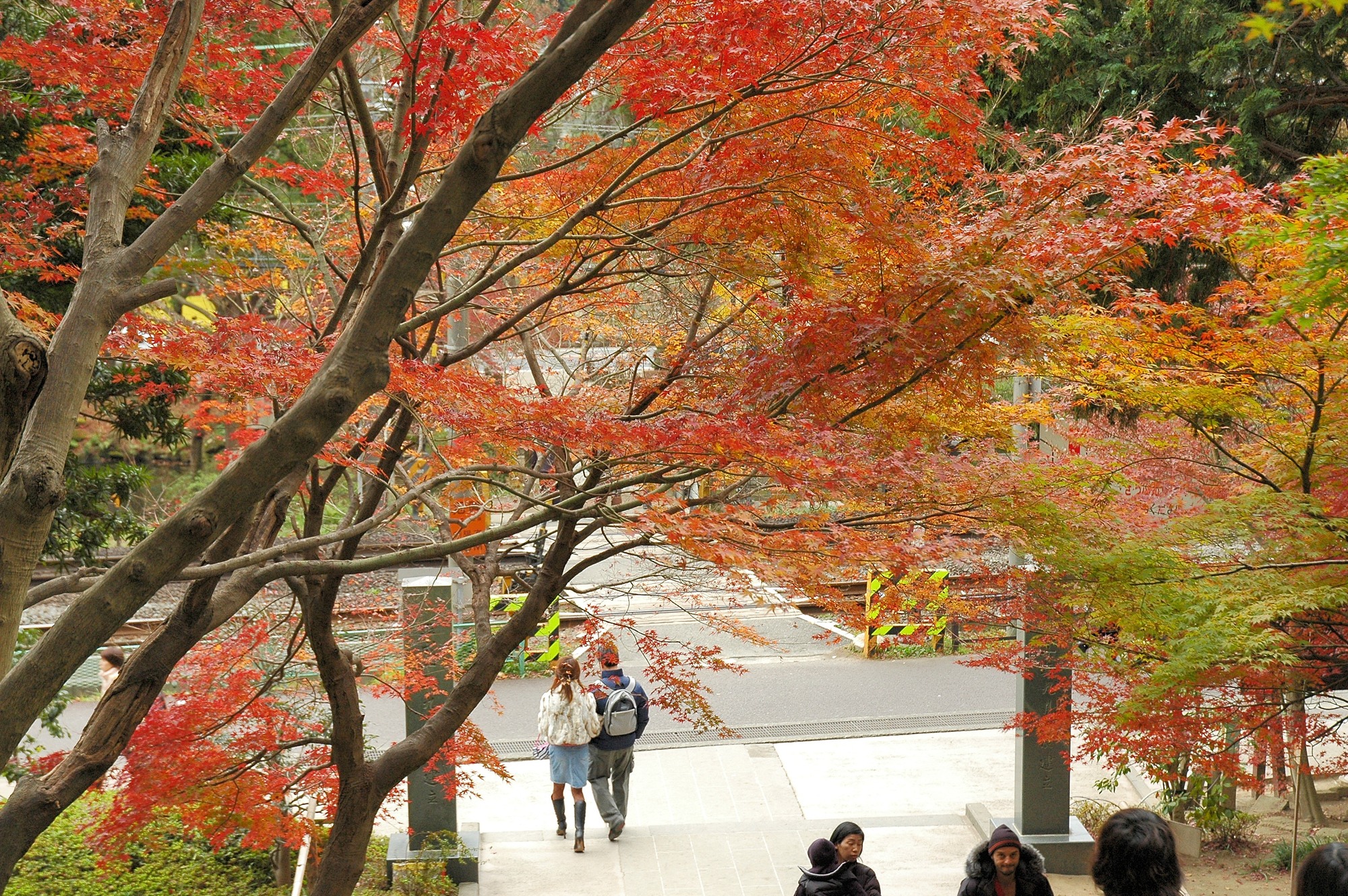 ここでは紅葉、と言うよりは、初めて訪れる鶴岡八幡宮をゆっくり見て歩きました。入り口の鳥居をくぐってすぐ見える池にはカモらしき鳥が多く泳いでいたし、昔懐かしの屋台もあれば、天然記念物で由緒ある「大銀杏」も見ることが出来ました。