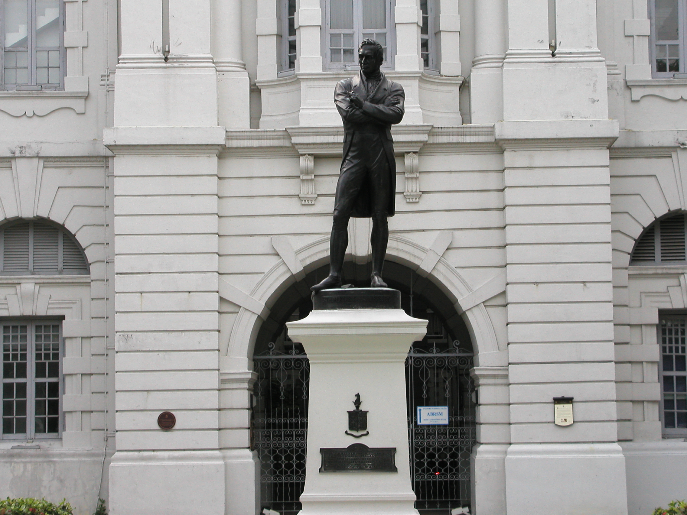 ラッフルズ卿の銅像(美術館前にあるオリジナル銅像)