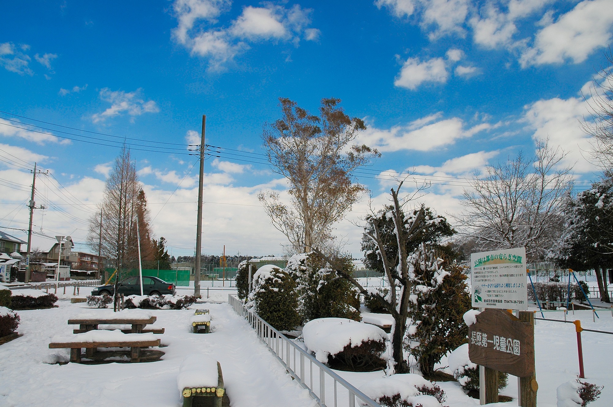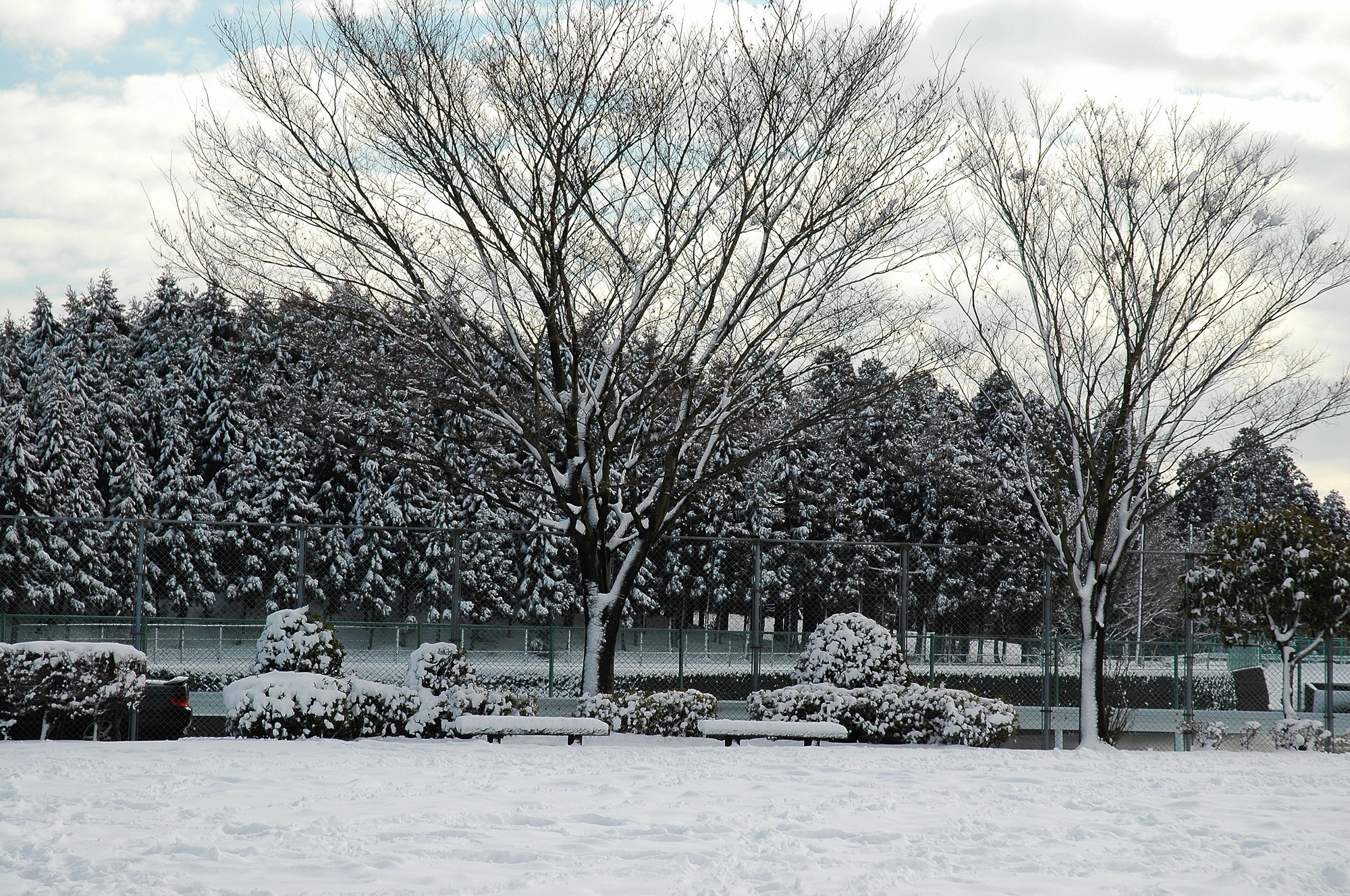 その公園から向こう側の雑木林を見ると、木々が雪に覆われて、とても寒々した光景でした。このあたりでこんな景色を見るのは初めてで、きっと冬の北海道はこういう感じなんだろうなあ、と思ってしまいました。