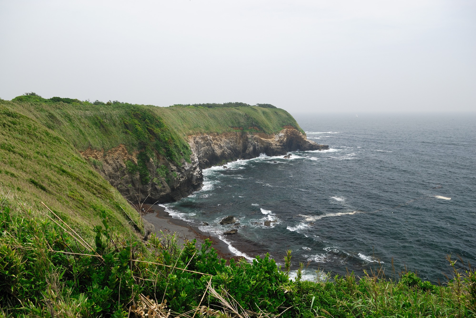 ここは城ヶ島灯台とは反対方向にある城ヶ島公園で,島の東側に位置します。歩き出すとなかなか広く,道も整備されていて気持ちいいエリアです。残念なのは天候がちょっと曇り気味であることですが,とても蒸し暑い日でした。歩道脇には,早くもアジサイの花が咲いていたりして,ちょっぴり感動。少し進むと展望台があったので,上がって海を見てみました。