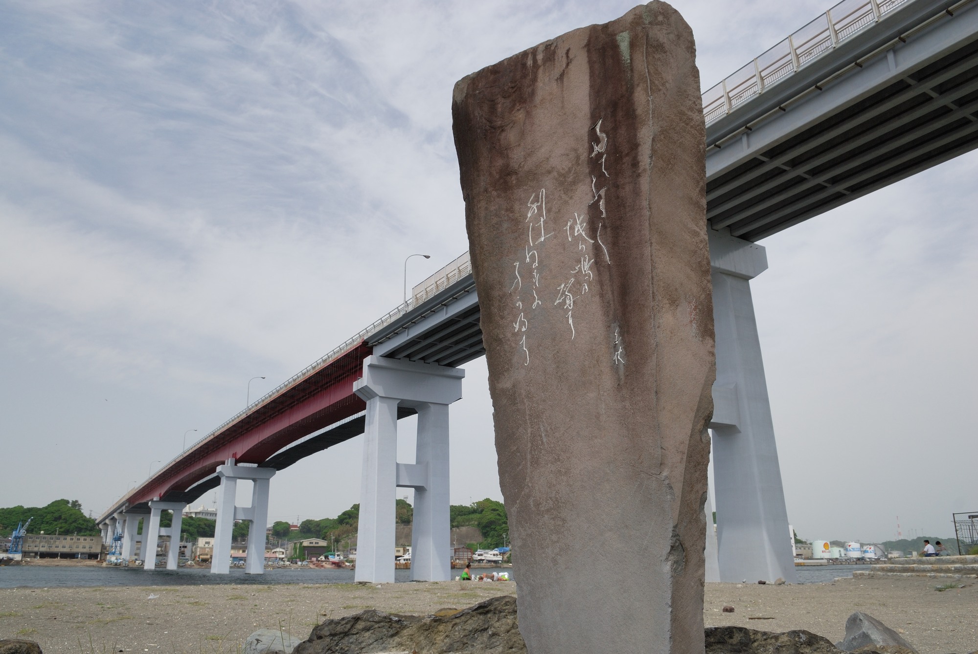 最後に行ったのは,城ヶ島大橋の下にある北原白秋の碑です。橋のふもとの駐車場に車を止めて歩いていきます。