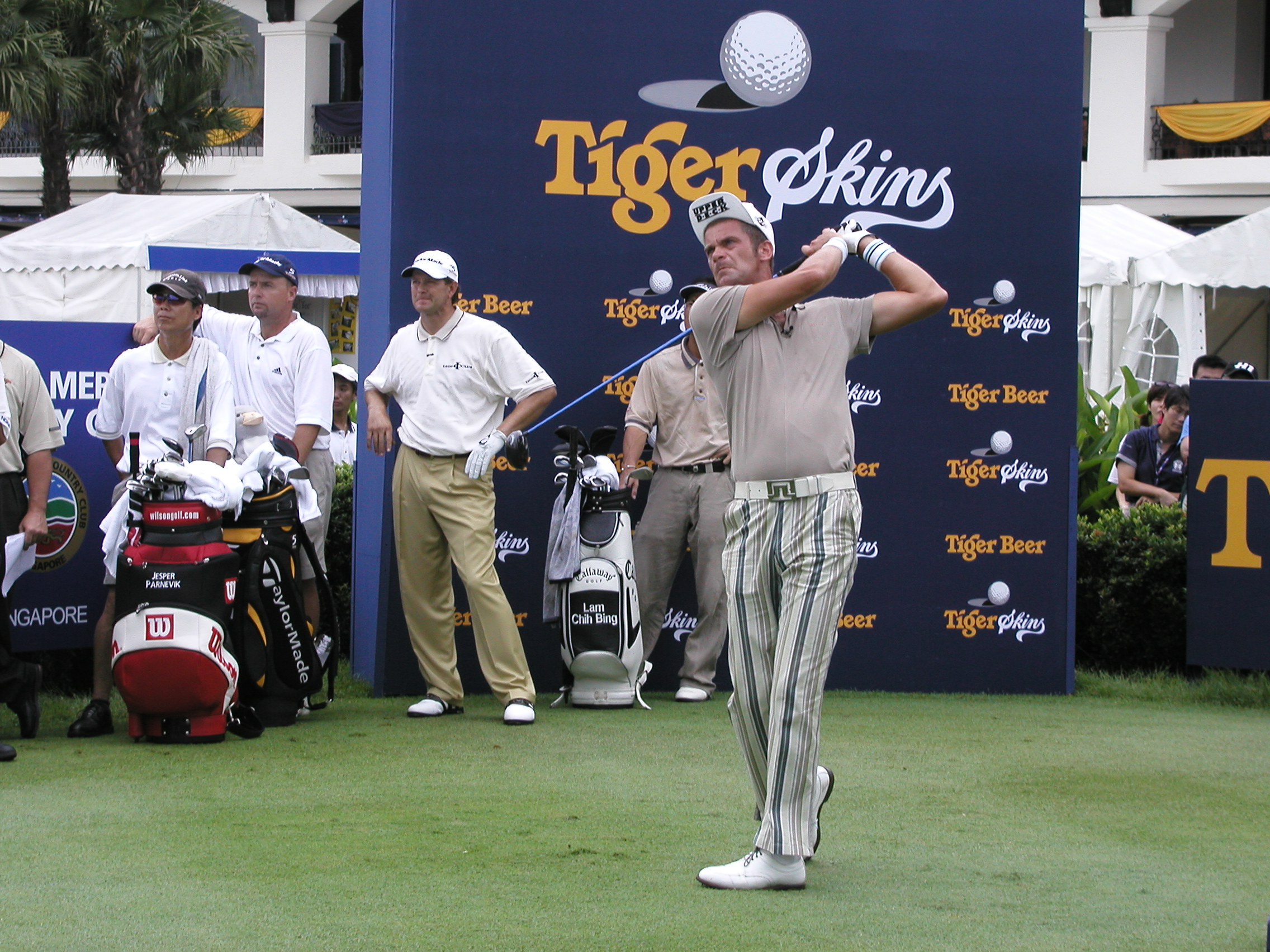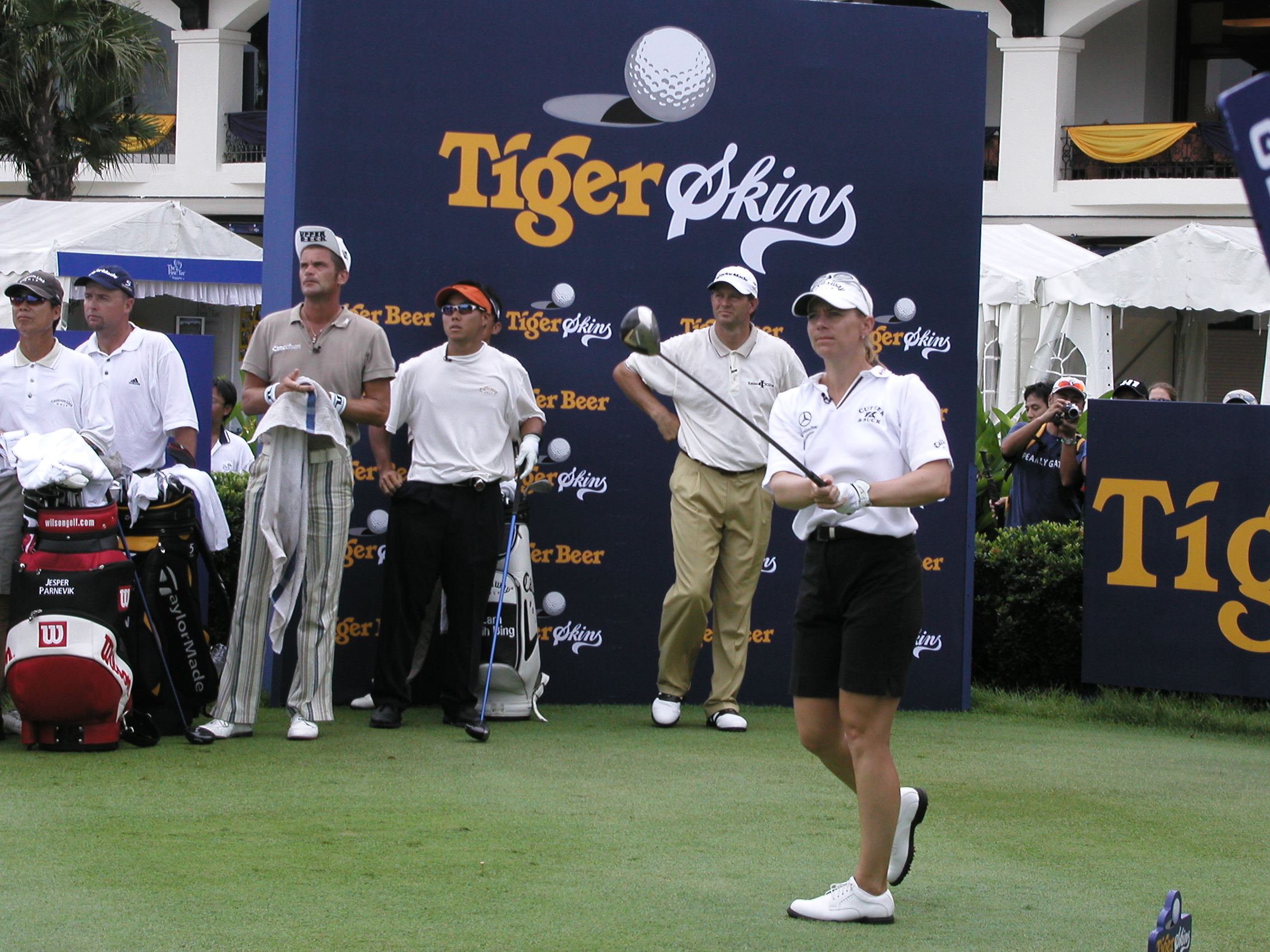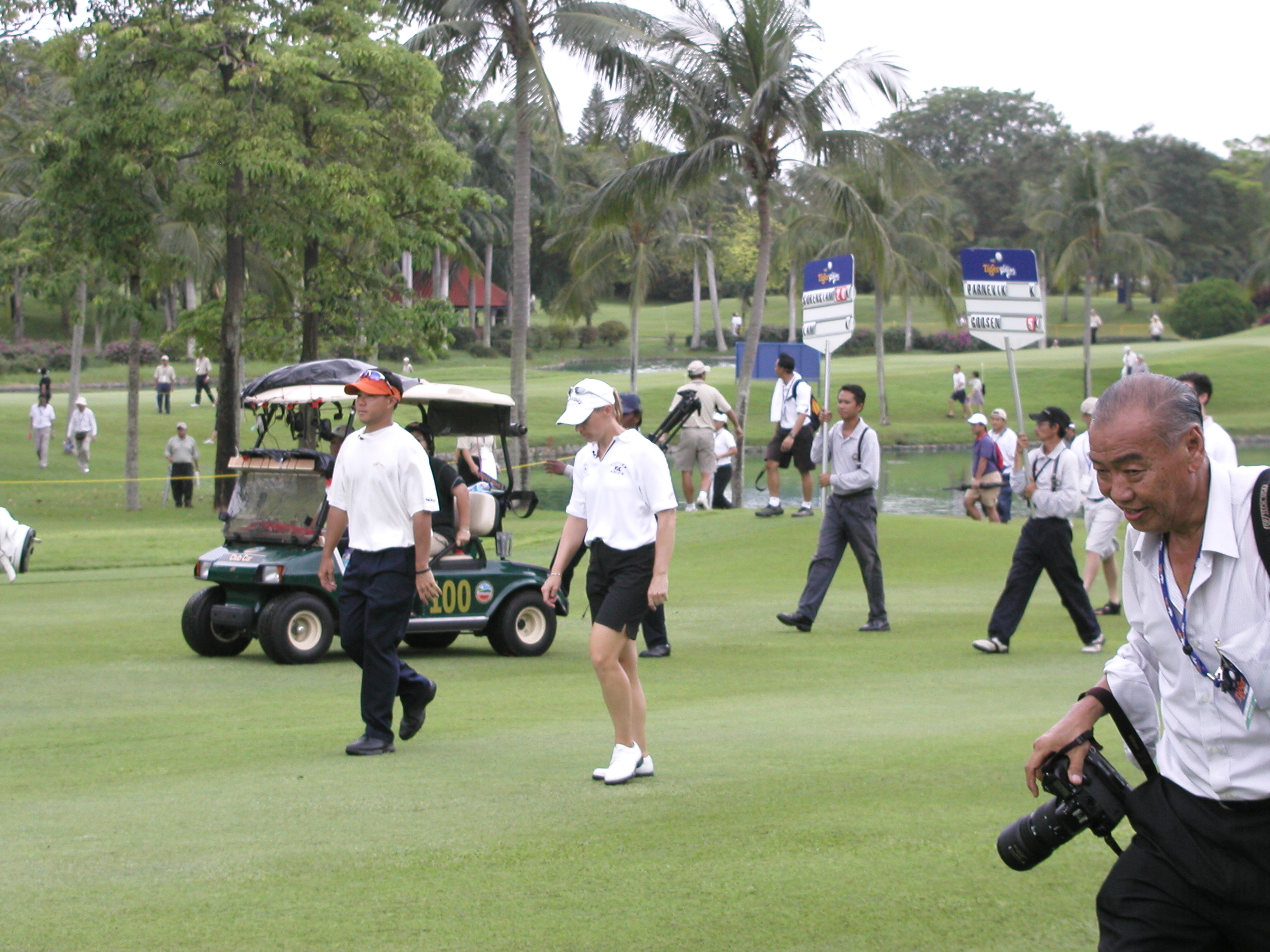 シンガポールで年に1回開催される「Tiger Skin 2003」というチャリティコンペに今年はアニカを初めとして、グーセン、パーネビックという世界有数のプロゴルファーが招待されました。これにシンガポーリアンのプロのラムを加え、4人でマッチプレーを行なったのです。