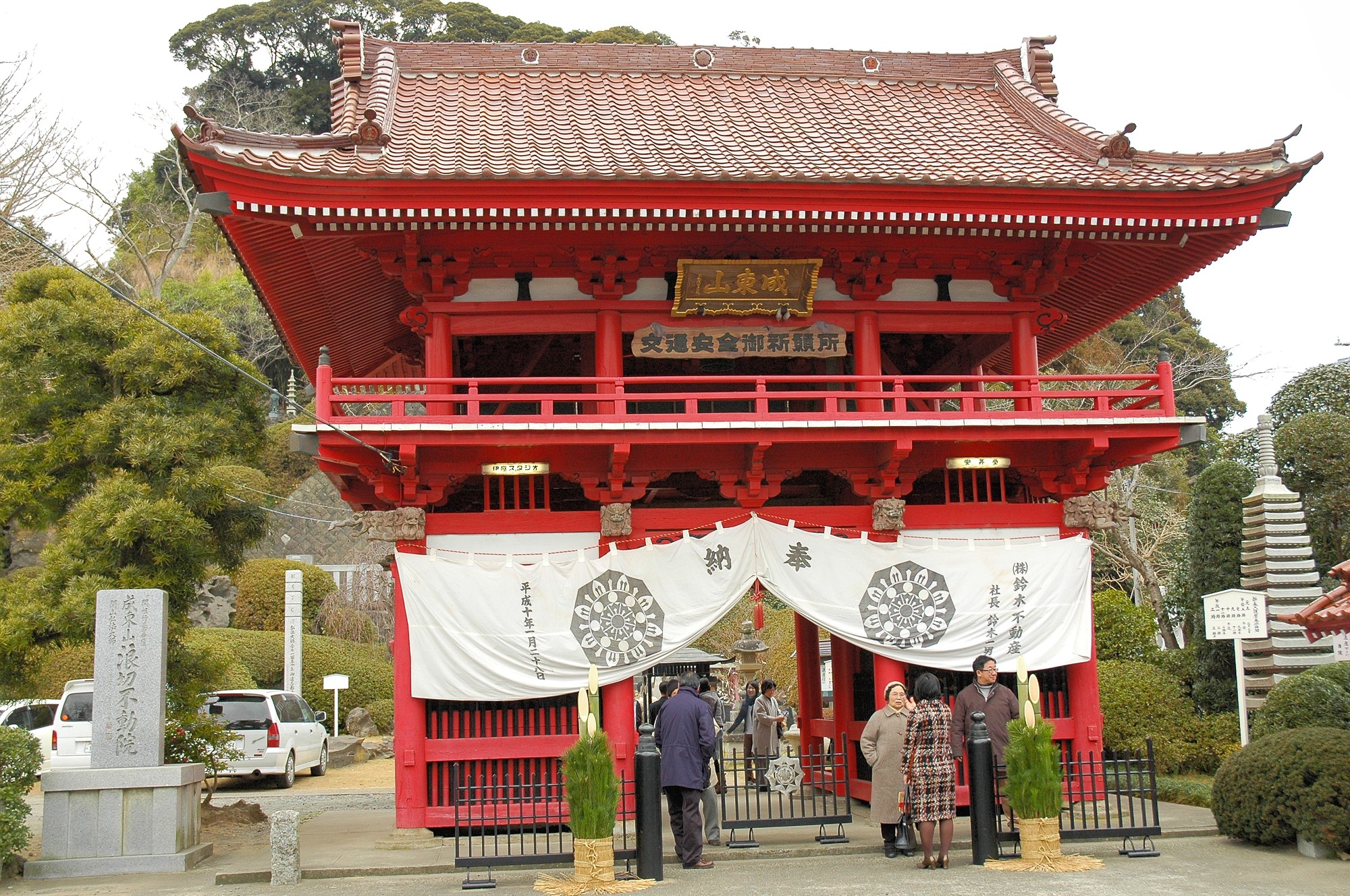 そのお寺は「浪切不動」といい、正式名称は成東山不動院長勝寺です。成東町は成田から車で30分ほど九十九里浜方面に走れば着くので結構近いのです。しかも調べたらその浪切不動、ご利益がたくさんありそうです。ネット情報では、「厄除け」「家内安全」「交通安全」「合格祈願」「縁結び」「子宝祈願」「商売繁盛」「安全祈願」「豊作大漁」とずらずらと並んでおり、全部が全部、関係ないのですが、何となく良さげなので早速元日の午前に行ってみました。