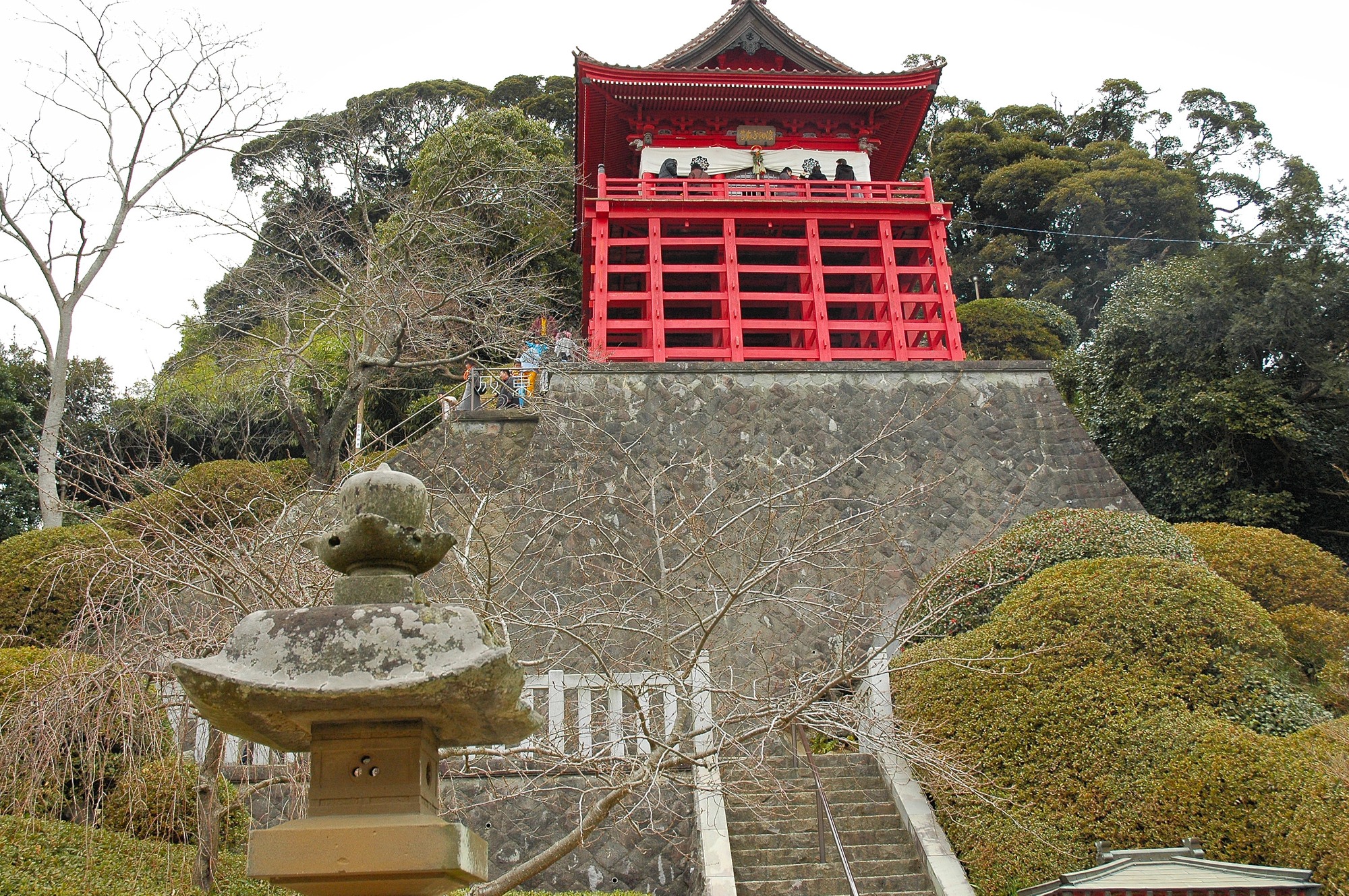 下から見ると非常に高そうに見えますが、上ってみると意外とすぐにてっぺんまでたどり着きます。そこで簡単に拝んで一応本年の初詣は終わりです。