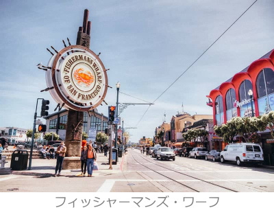 名残惜しみつつゴールデンゲートを後にして、次に向ったのは海沿いのフィッシャーマンズワーフ(直訳は「漁師の波止場」)です。