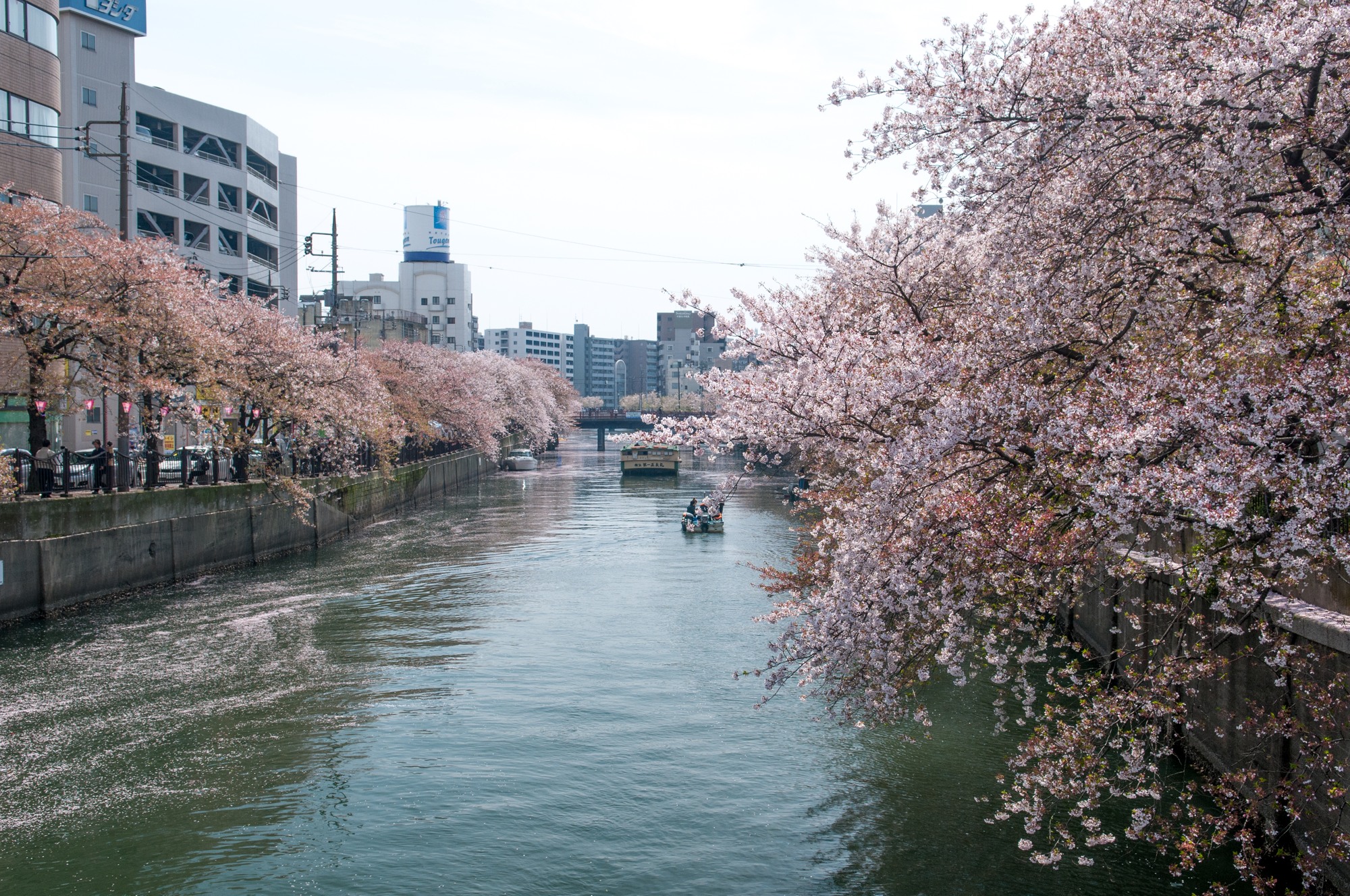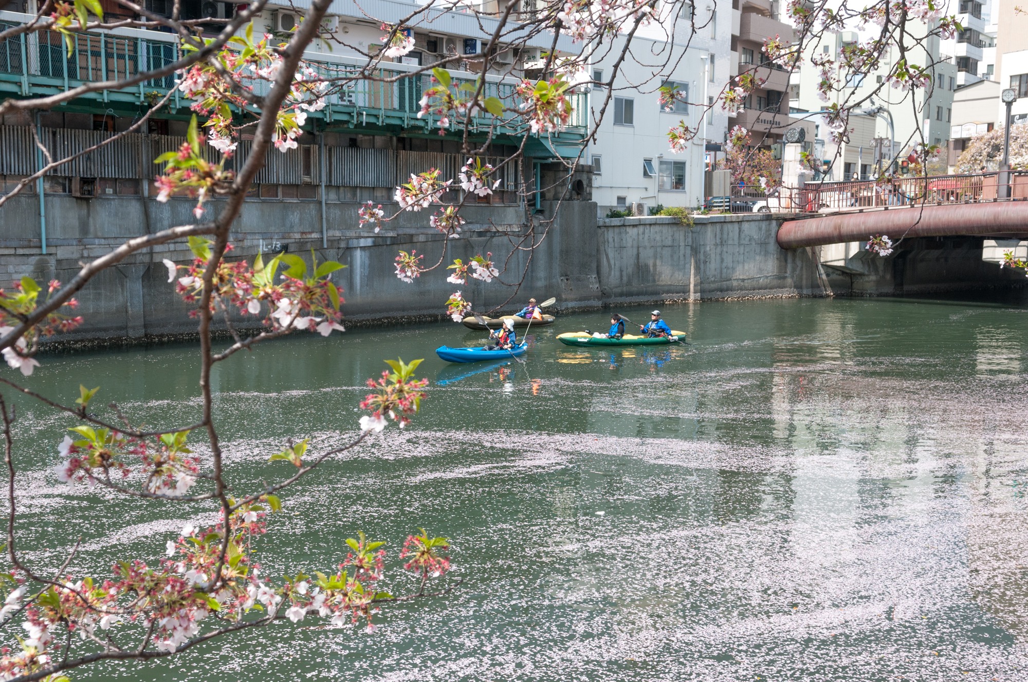 その桜の花びらをかきわけながら進む観光船カヌーのようなボートもおり、乗ったら楽しいだろうなあと思わされました。