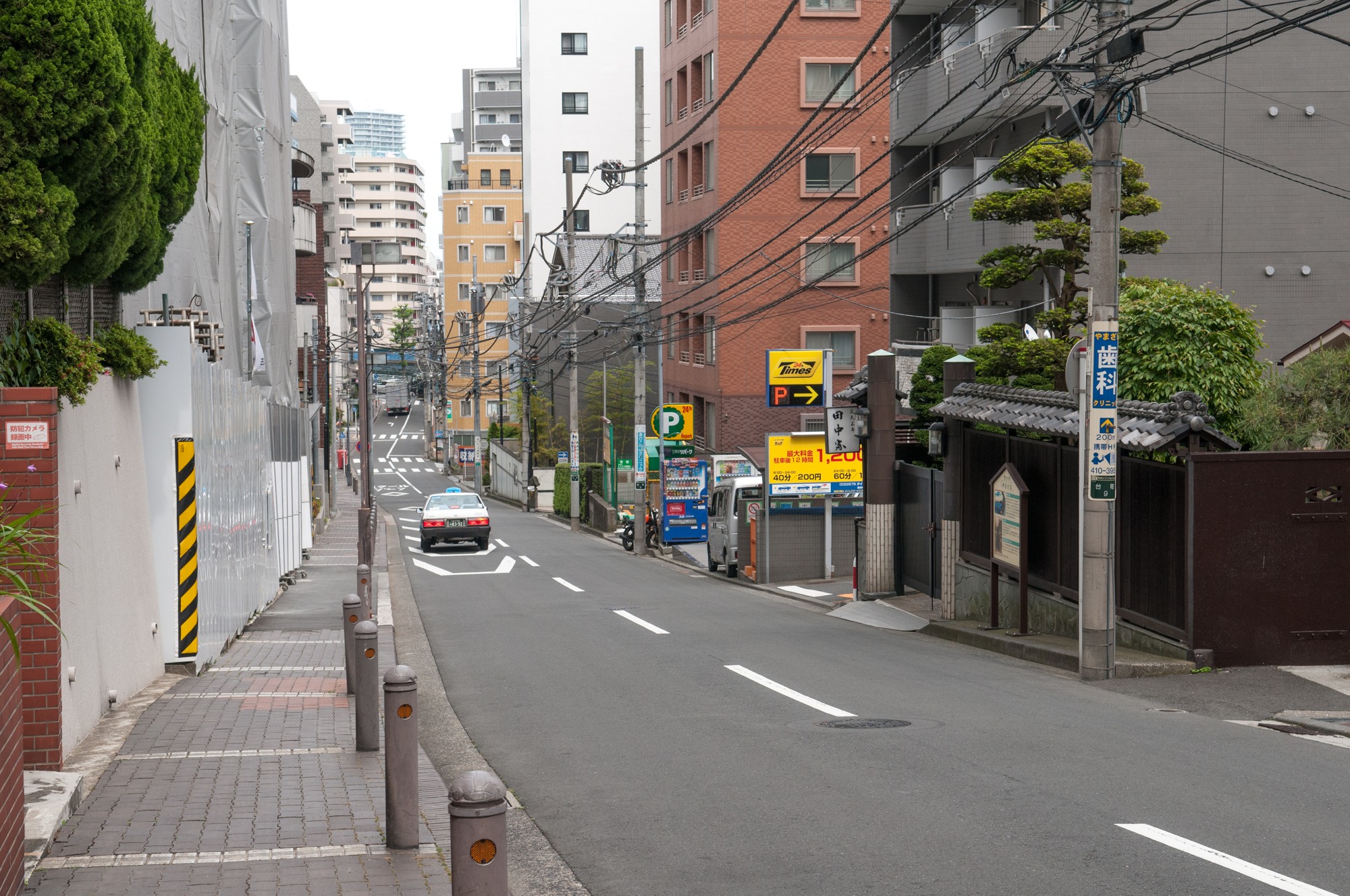 自宅マンション前より撮影した旧東海道 右端に写っているのが田中屋