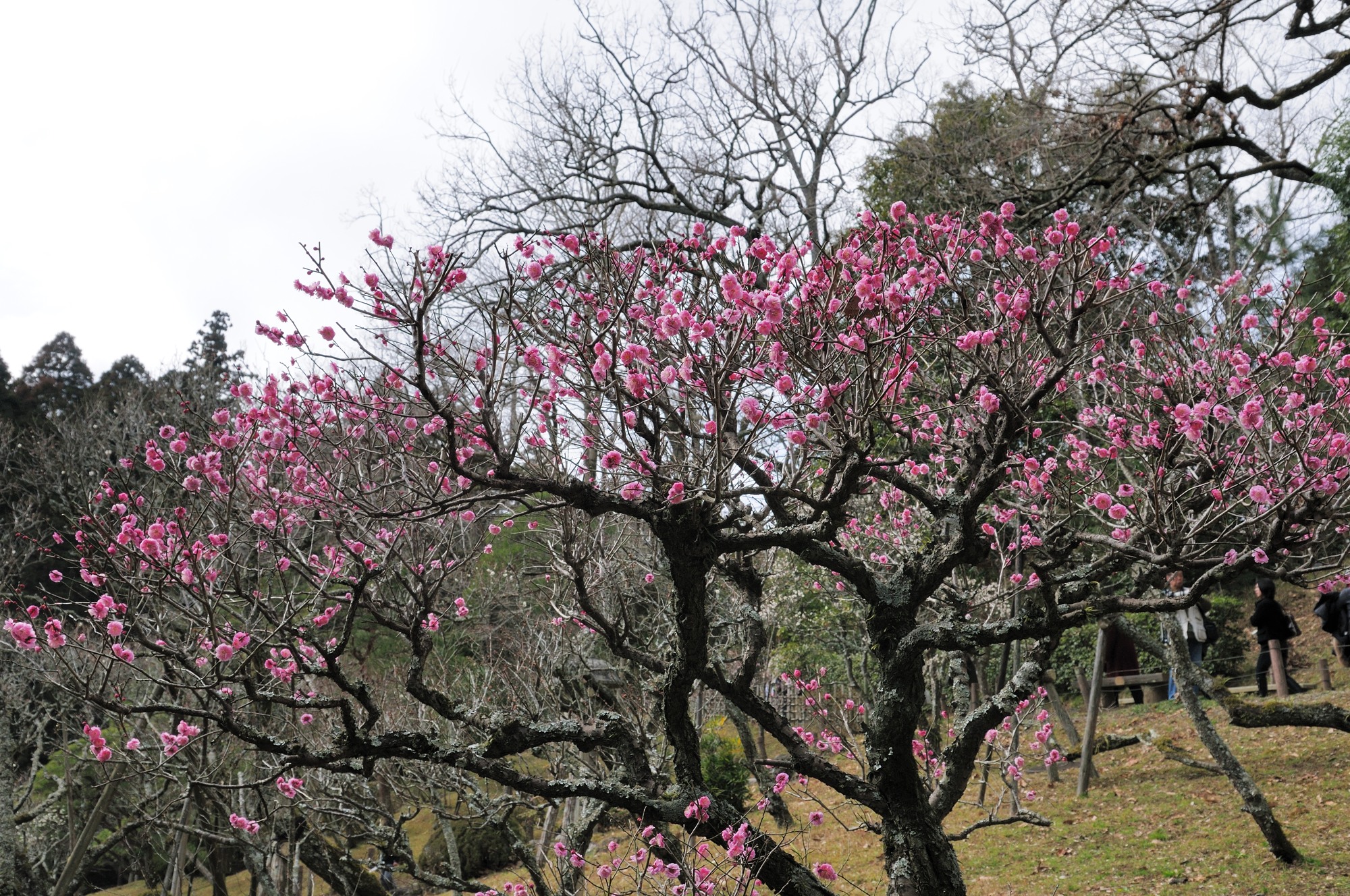 しばらく歩いて平和の大塔が見えるあたりに来ると,ちょっとした梅園があります。そこに入ってみました。見ると白い梅と紅い梅が入り乱れて咲いています