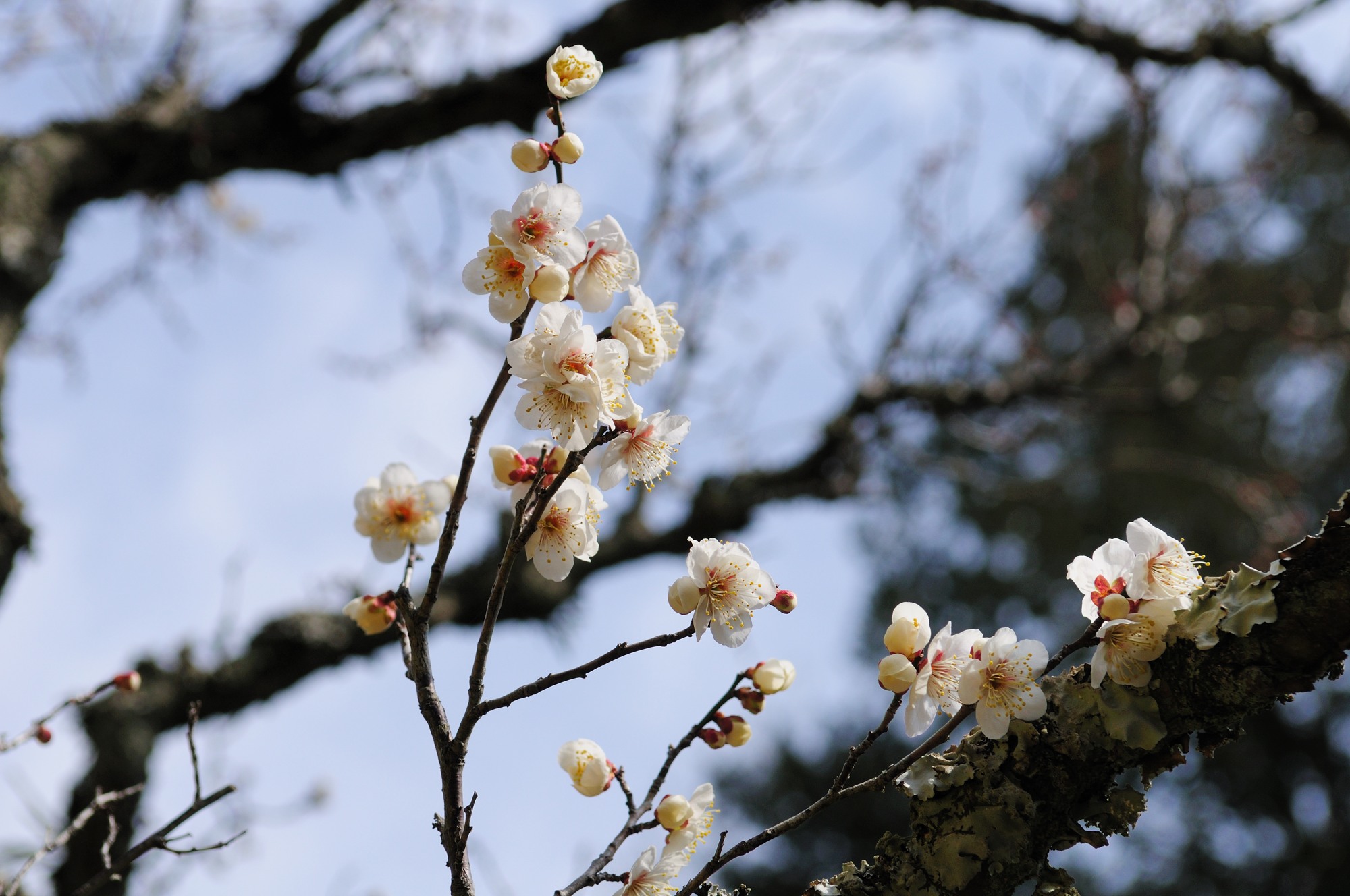近くに寄って写真を撮ってみました。梅の花を近くで見るのは,実はほとんど初めてですが,意外と綺麗な花です。感動しつつ何枚か写真を撮りましたが,周囲にも同じように一眼レフで写真を撮っている人がたくさんいました。