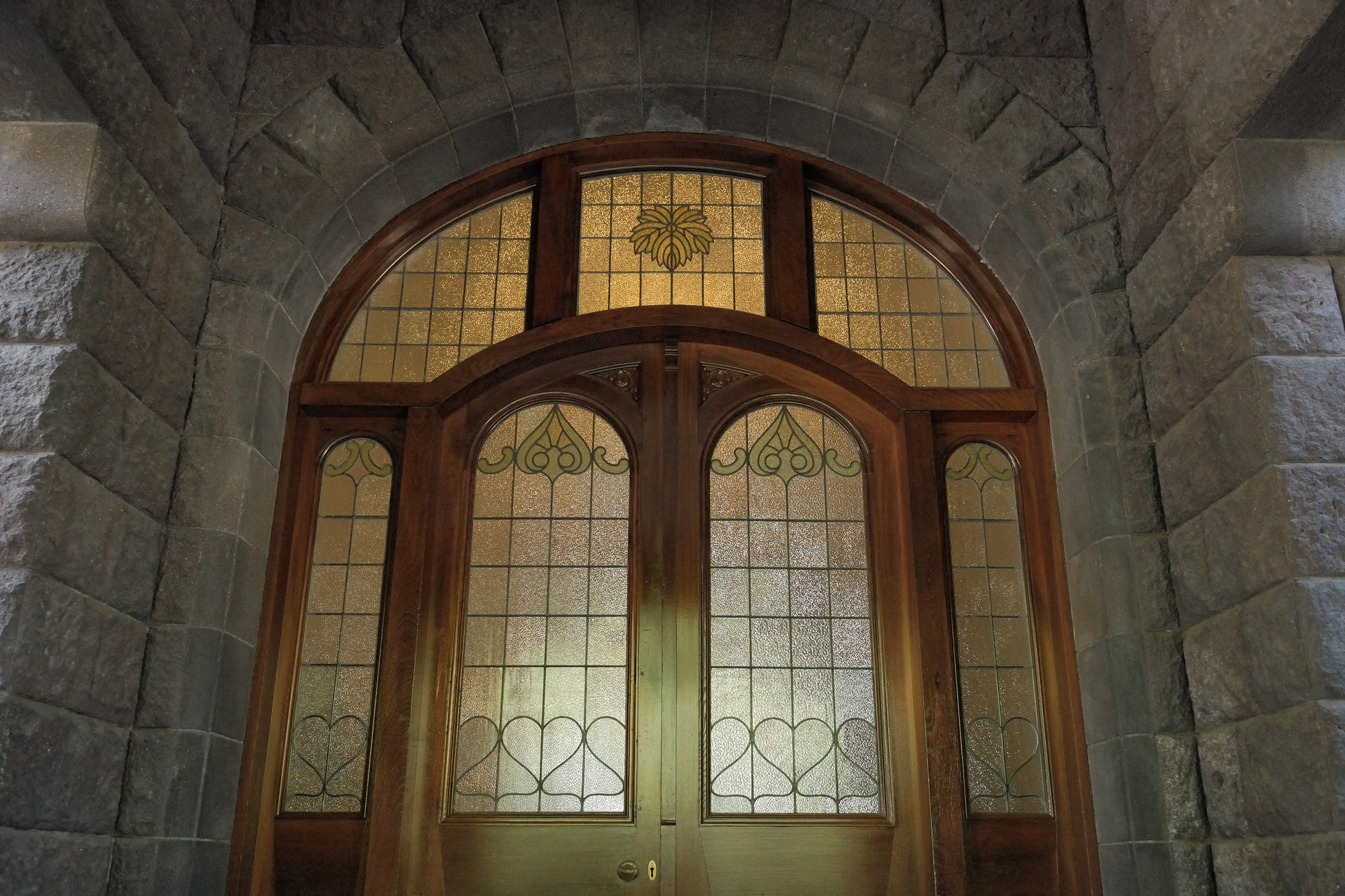 その洋館の入り口はステンドグラス風の窓ガラスがはまっていて,とても綺麗でした。