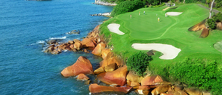 ビンタン島のリア・ビンタンGC Oceanコース名物 #9 海超えショート(GDOより)