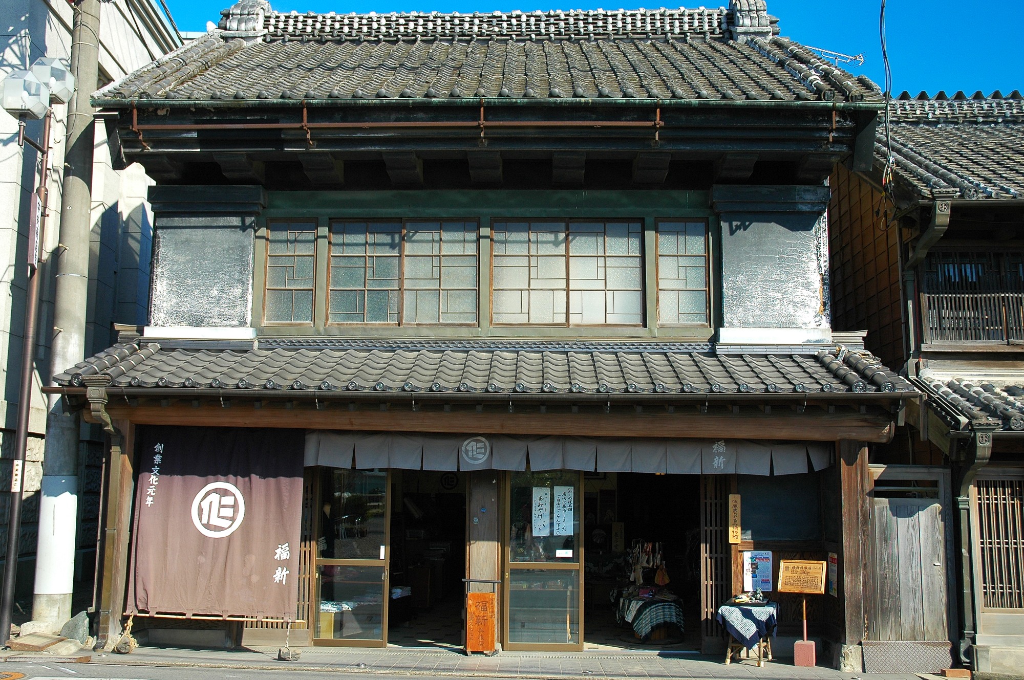 これは「正文堂書店」で、明治13年(1880年)の建築です。建物は三重に防火設備を施した土蔵作りとなっています。