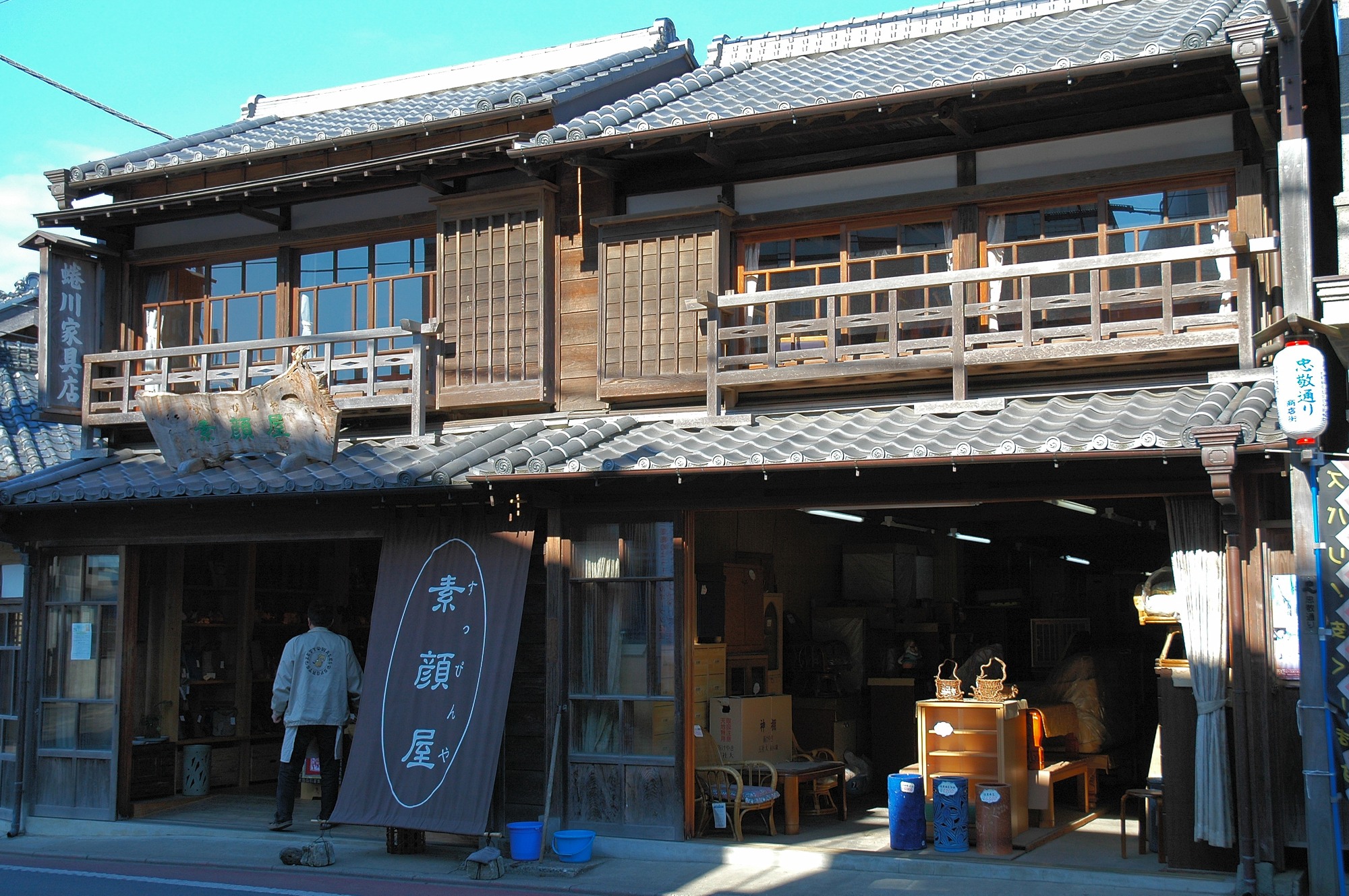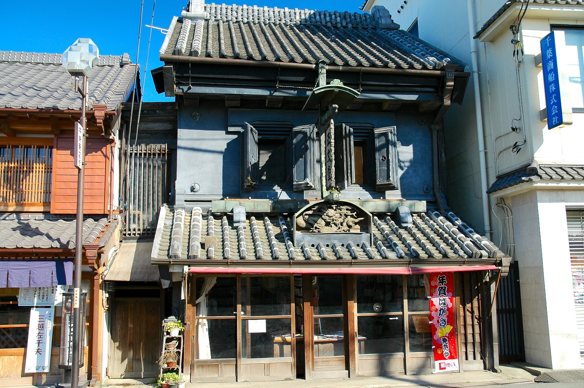 駐車場の前のメインの道は香取(かとり)街道と言うようです。歩き出したらすぐに分かりますが、この香取街道に沿ってかなり古い建物がいくつか並んでいます。木造の建物、蔵らしいもの、などいくつも並び、1つ1つにいきなり感動すること請け合いです。