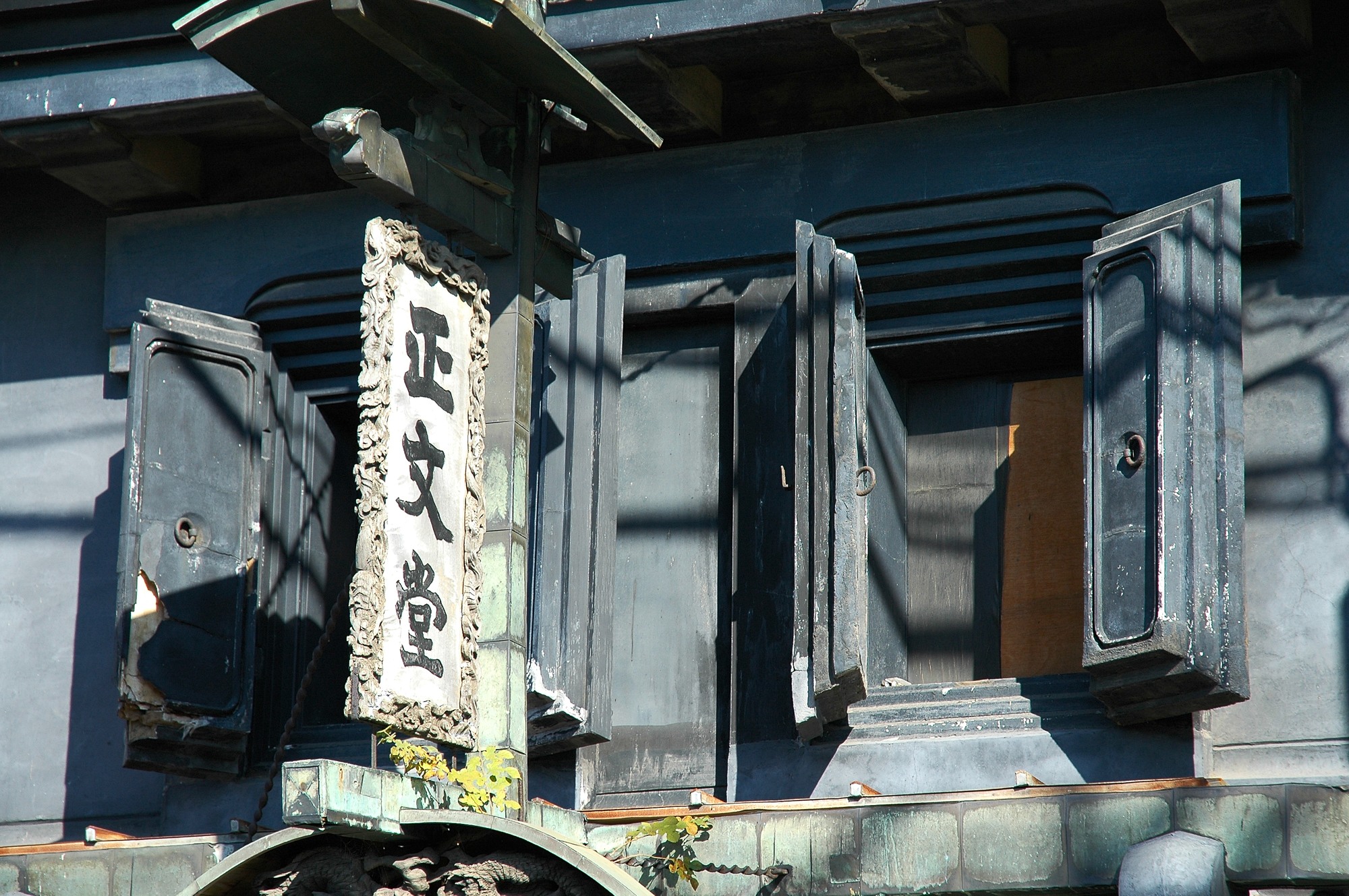 また、2階にかかっている正文堂の看板は明治29年(1896年)作成で、看板のフチには登り竜と下り竜が配してあります。