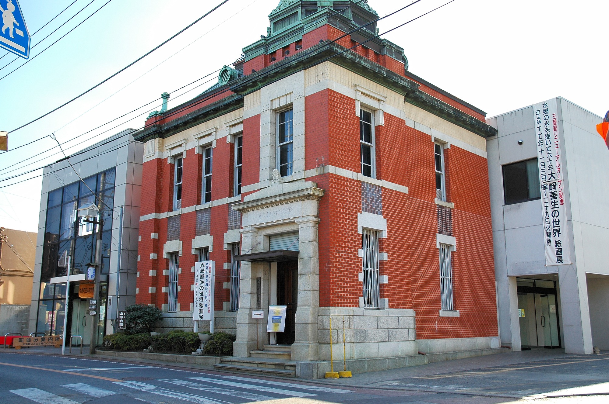 これが「三菱館(旧 三菱銀行佐原支店)」で、大正3年(1914年)の建築です。現在は市に寄贈され中では絵の展覧会などを行なっています。入場は無料なので入ってみましたが、天井は高く、しかし中は意外と狭い感じでした。