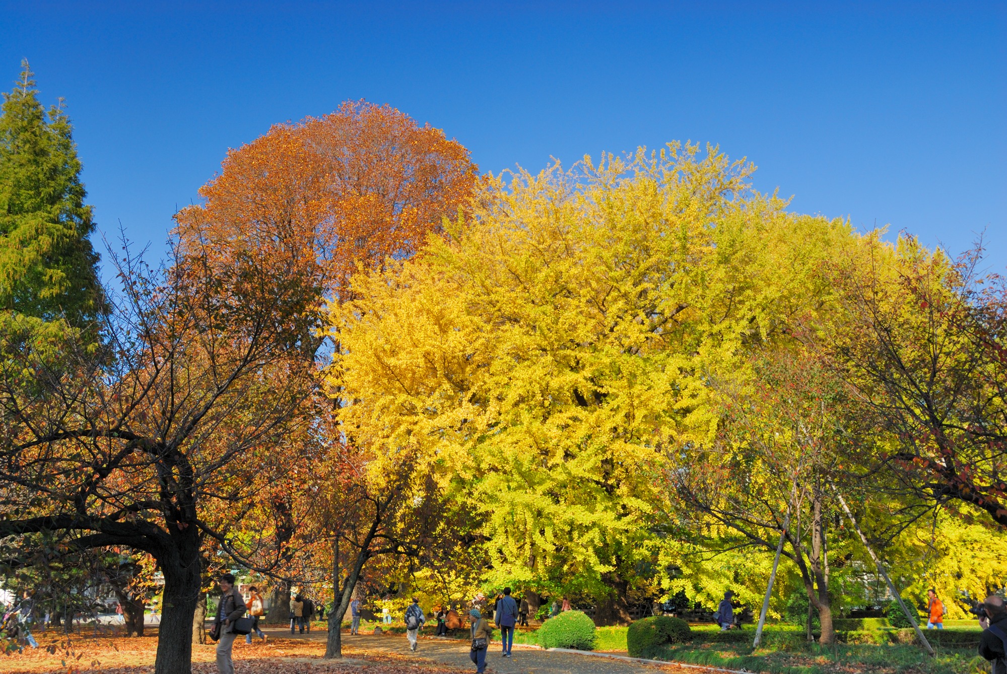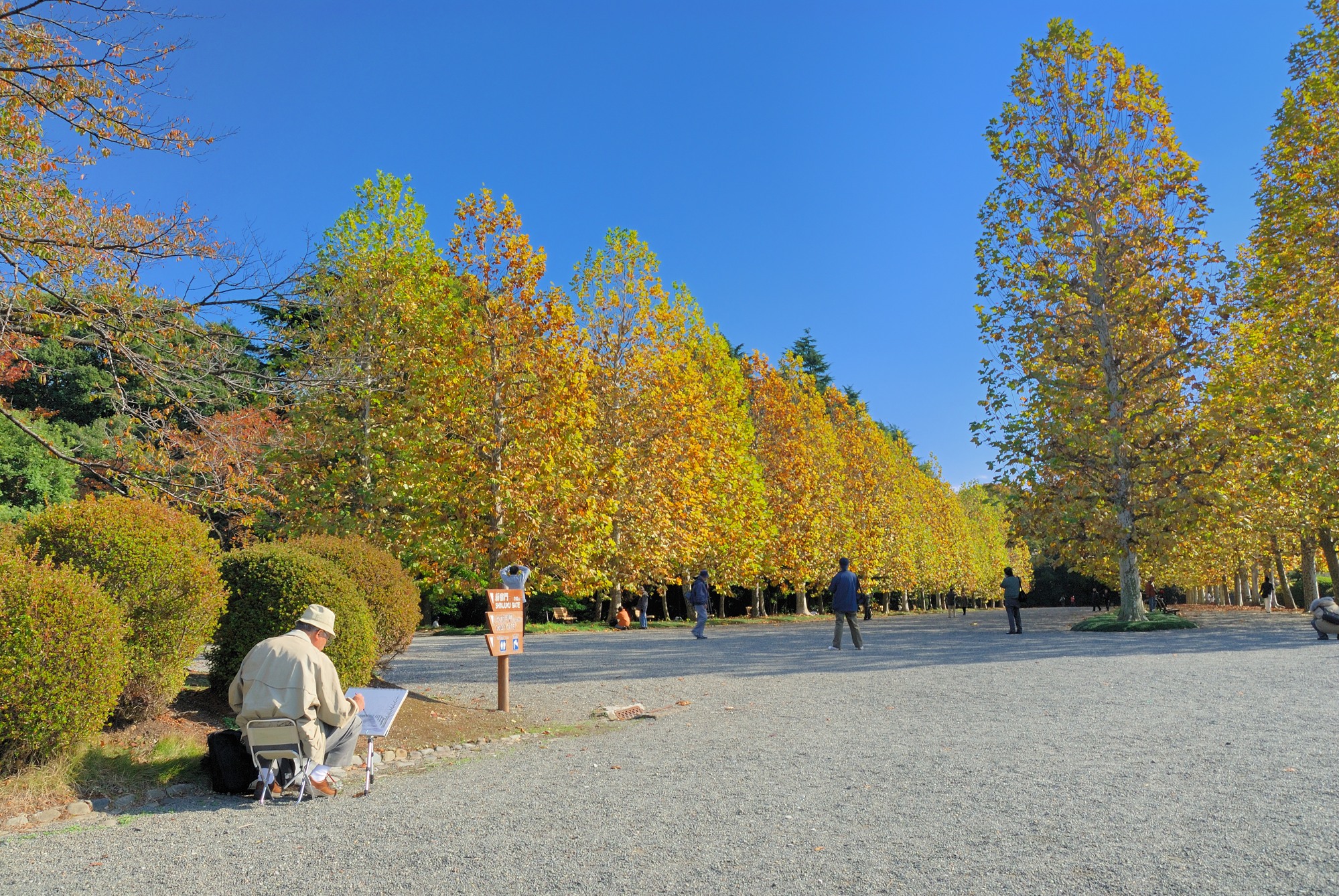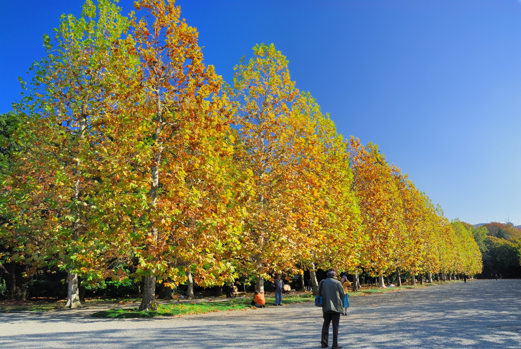 まず行ったのは新宿御苑です。目的は、プラタナス並木がちょうど見ごろで見事とのことでしたので、それを見に行きました。