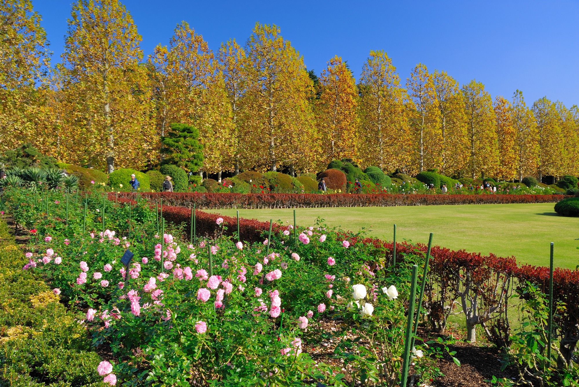 プラタナス並木は園内の東側、フランス式整形庭園のバラ花壇の隣にあります。