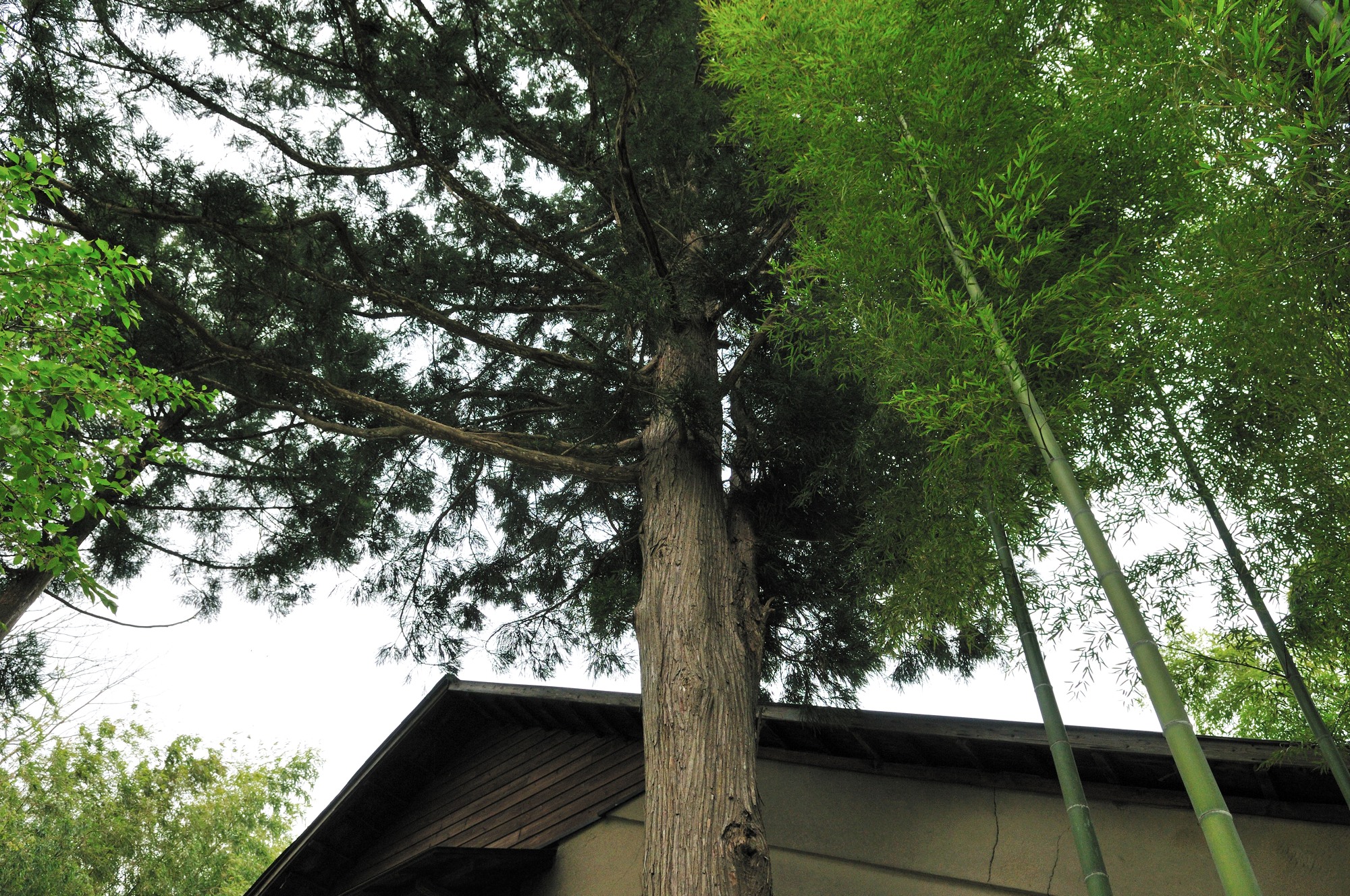更に先の方には竹林が見えます。竹は孟宗竹で、その近くには樹齢300年以上と言う杉の大木もあります。池の奥の方には見事なつつじがたくさん咲いていました。これで池の周りをぐるりと一周した所で、有備館を出ます。