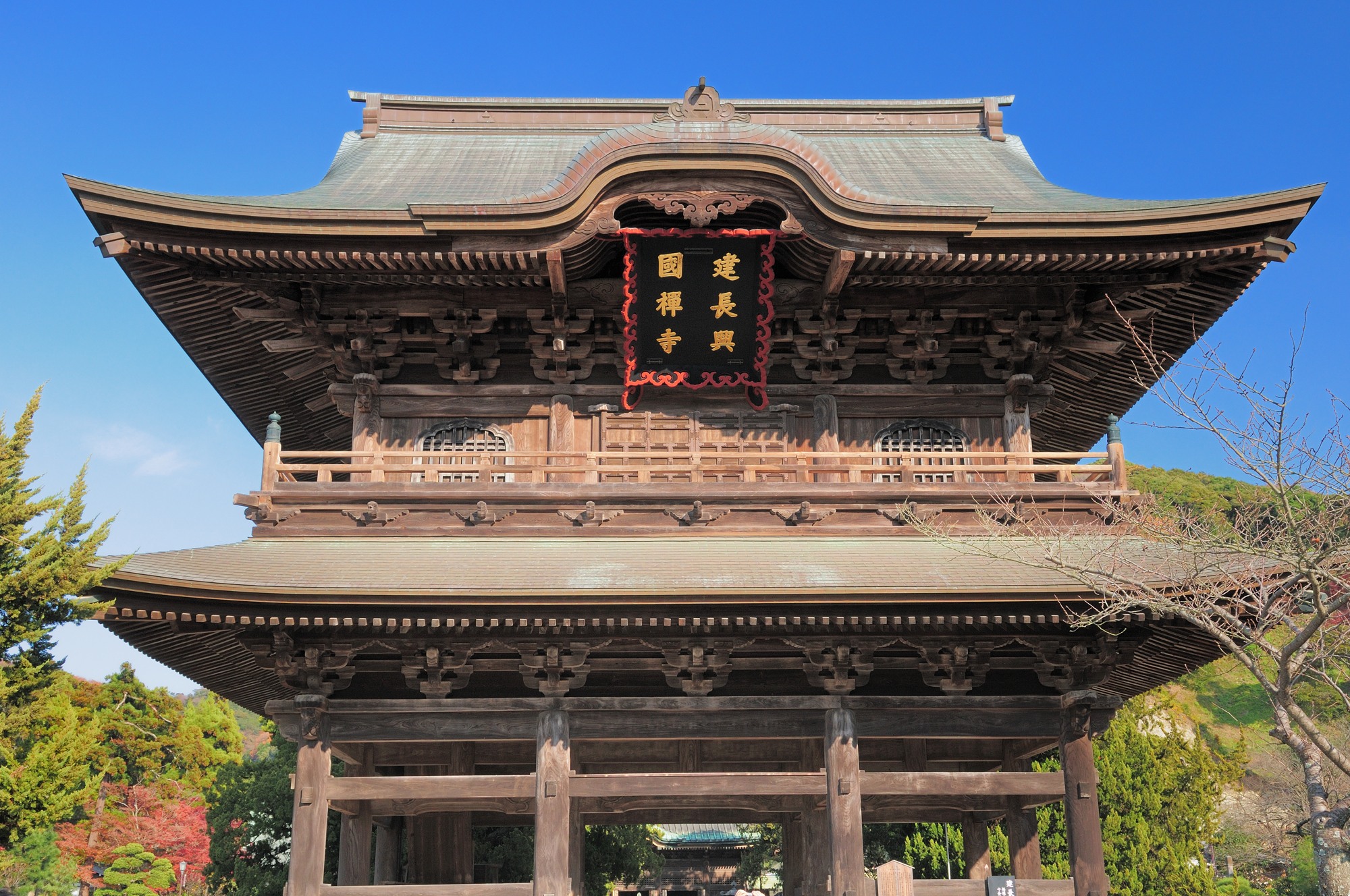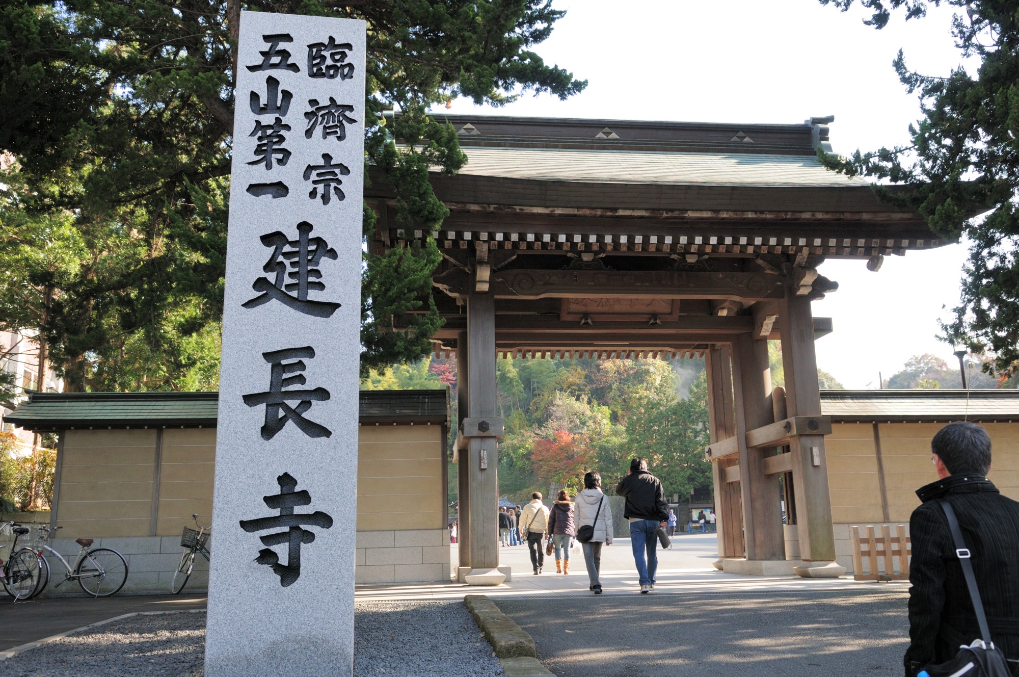 参道を歩いてゆくと,正面には見慣れた見事な山門が見えてきます。「建長興国禅寺」と書かれたこの山門は建長寺に入って最初の見所で,私が鎌倉で最も好きな場所の1つです。